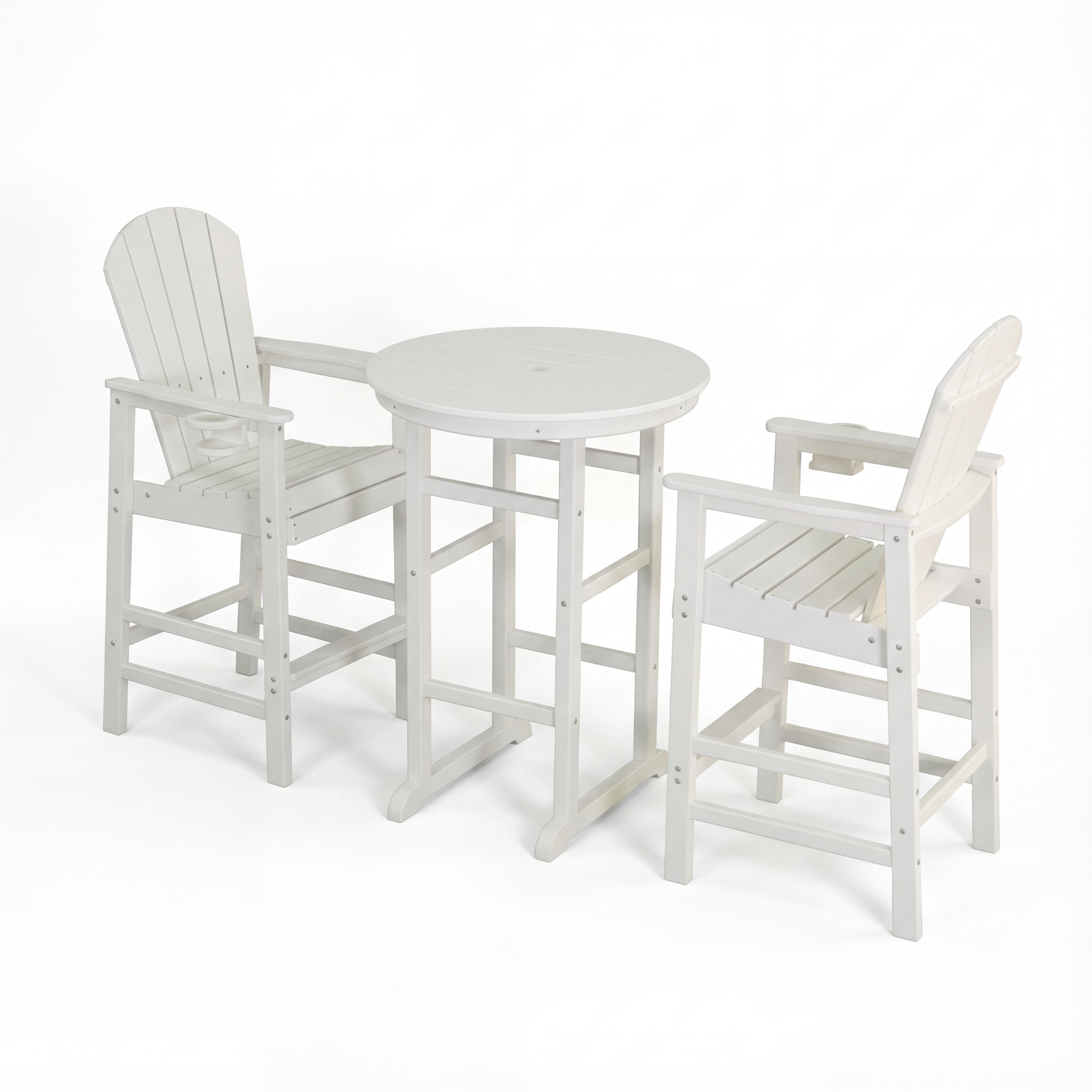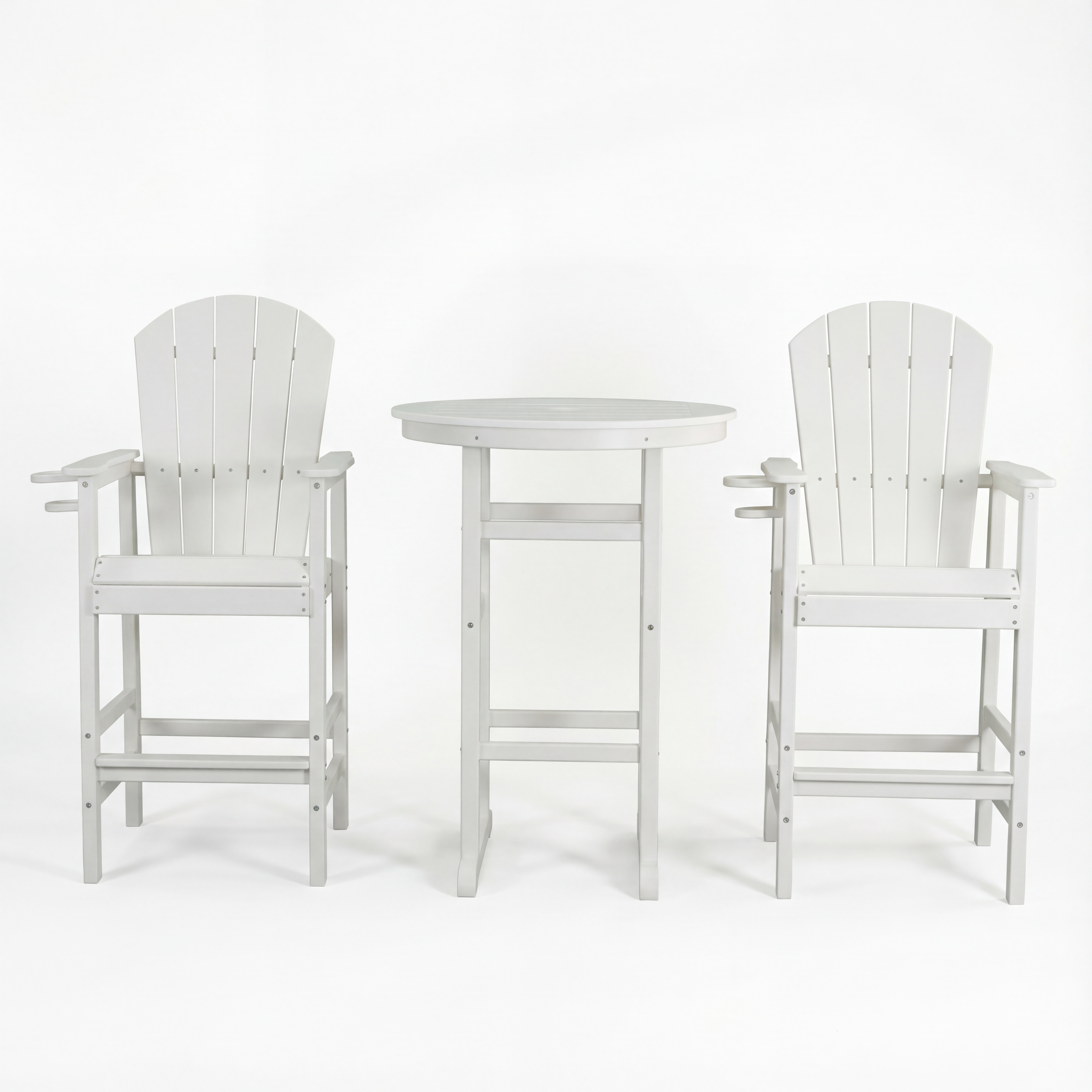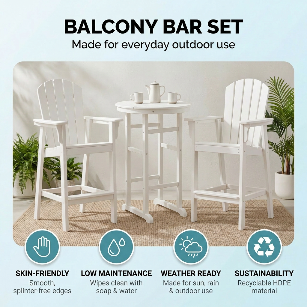 3-Piece White HDPE Indoor Outdoor Bar Set, 42.1 Round Bar Table With 2 Bar Stools, All-Weather Patio Bistro Set For Deck, Balcony, Poolside & Coastal Use is designed for style, comfort, and everyday use.