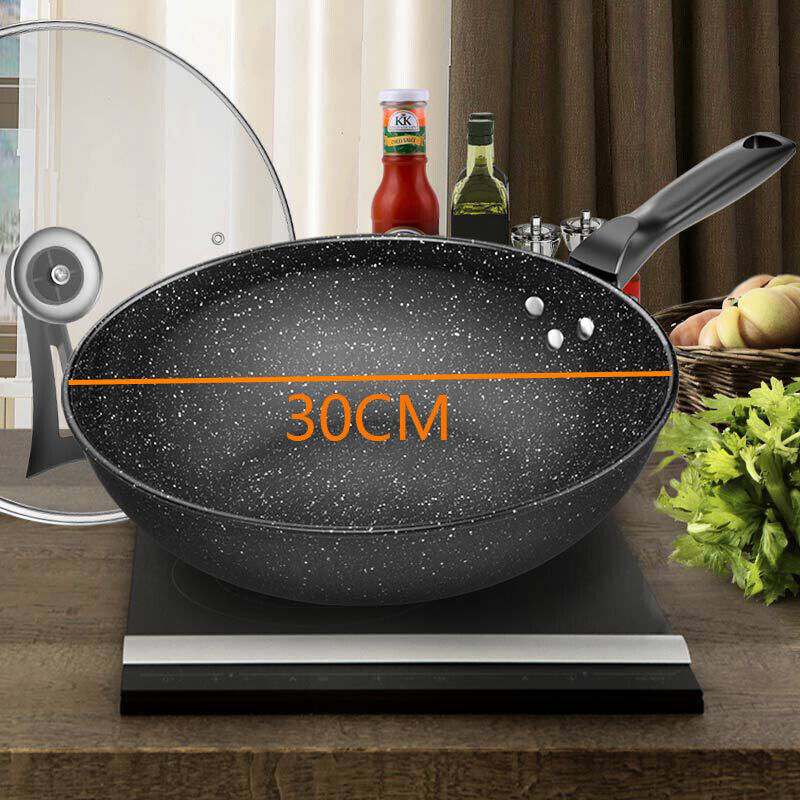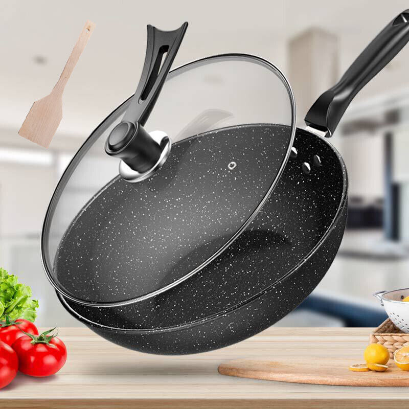 30CM Non-Stick Frying Pan Skillet Saute Pan Tempered Glass Lid Granite Coating
