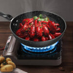 • — The pan itself is lightweight and— Uniformity of heating and fast heat conduction.— Suitable for gas cooker, induction cooker and other kinds of cookers.—-Not easy to stain the pan, easy to clean.—-Visual toughened glass lid.—-Anti-scald handle, comfortable grip, effective heat insulation and anti-scald.