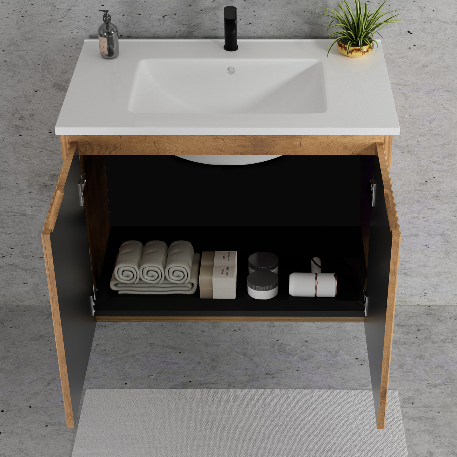 30inch Gloden Oak Folding Wall Cabinet With Creamic Sink- Patented 1-Minute Install Space-Saving & Easy Assemble Modern Style