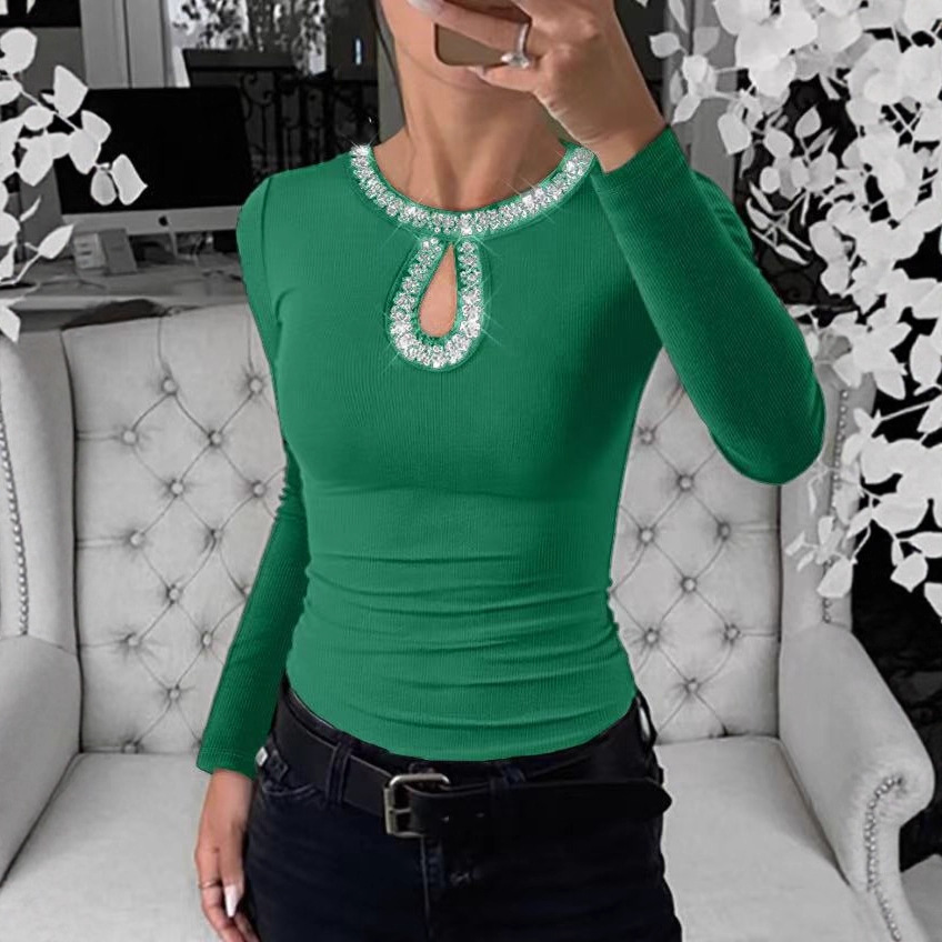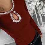 Be the first to review “3D Rhinestone Embellished Crewneck Ribbed Long-sleeve Top”