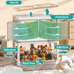 3Pcs Foldable Storage Bins With Lid 4 Doors Collapsible Stackable Closet Organizer Containers With Lock 4Pcs Wheels
