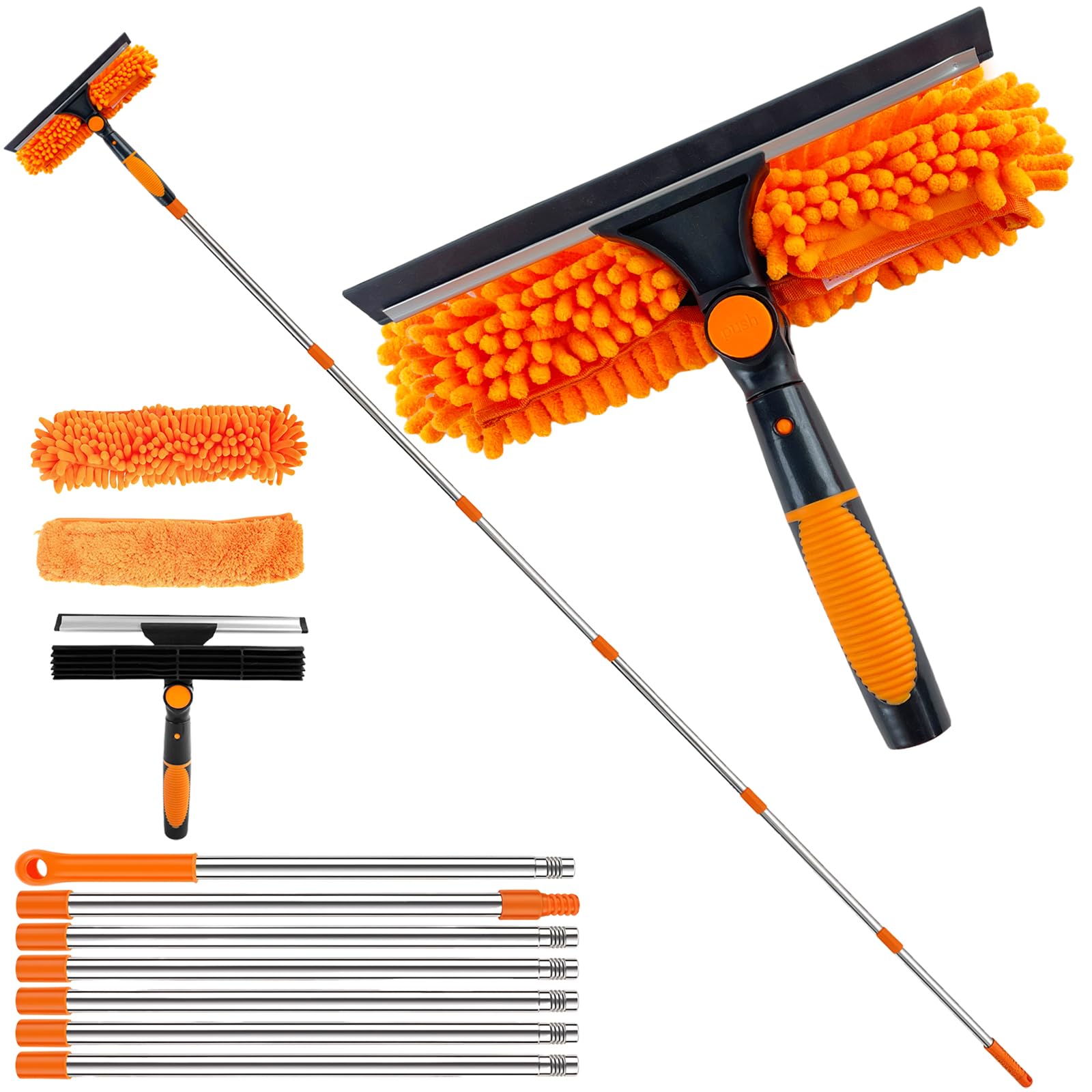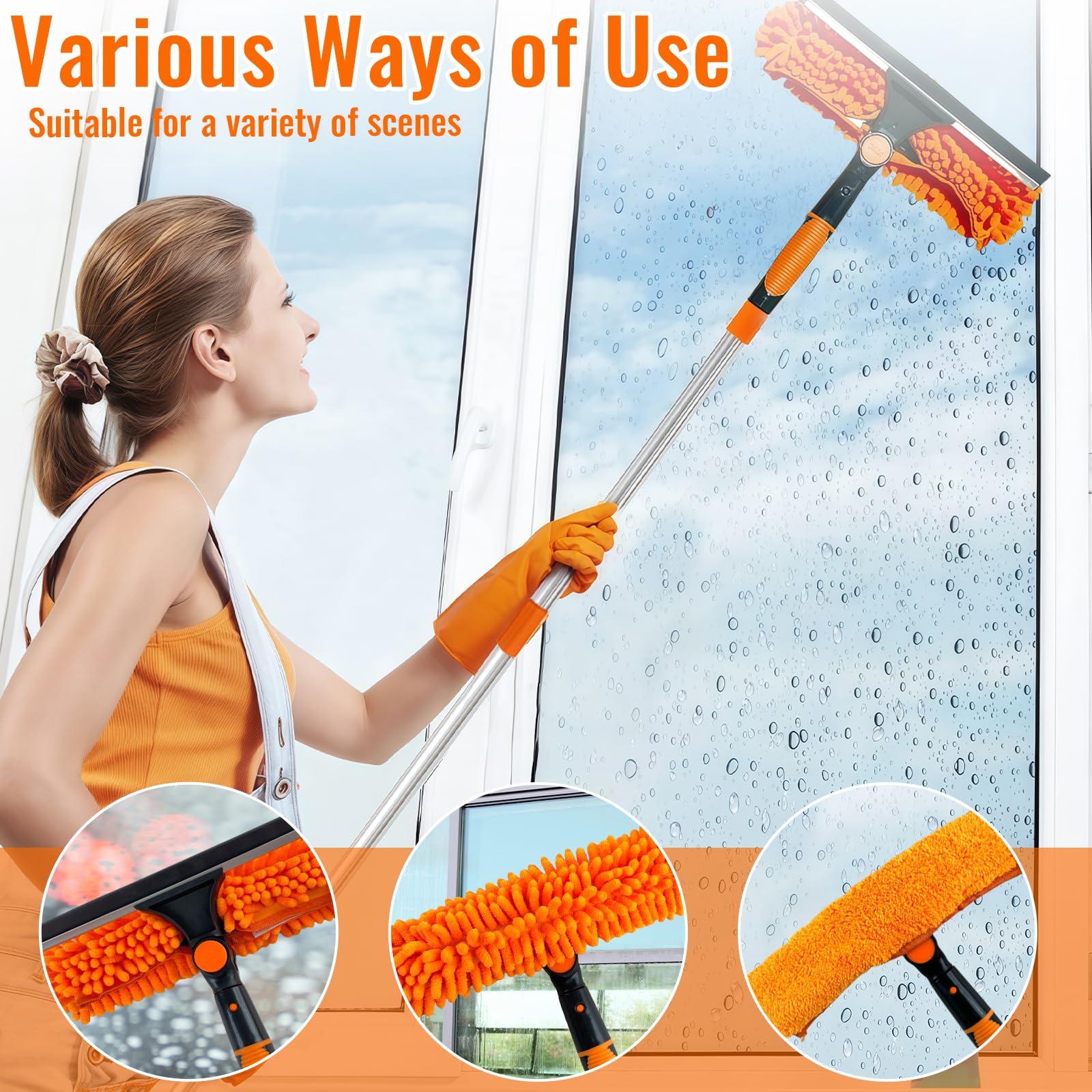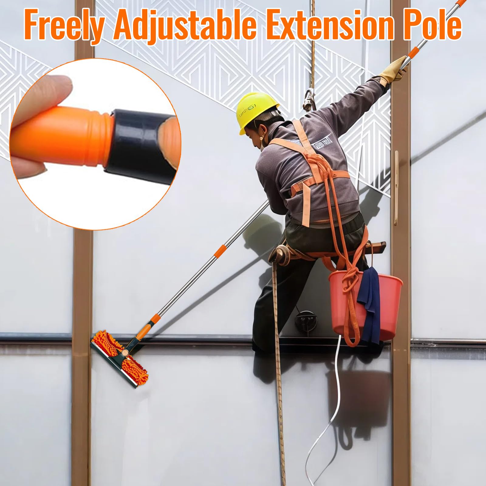 4.5m 15ft Telescopic Window Cleaning Brush Kit Extending Wash Head Squeegee High