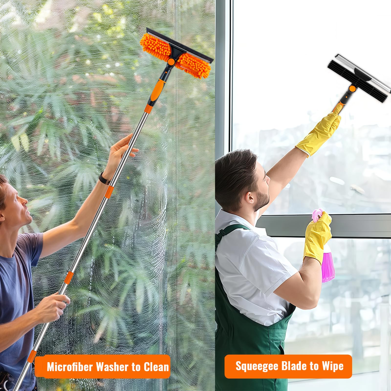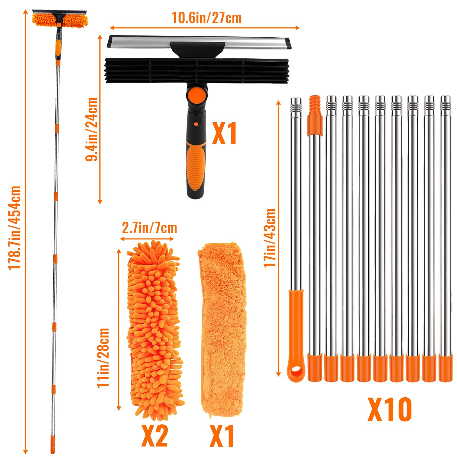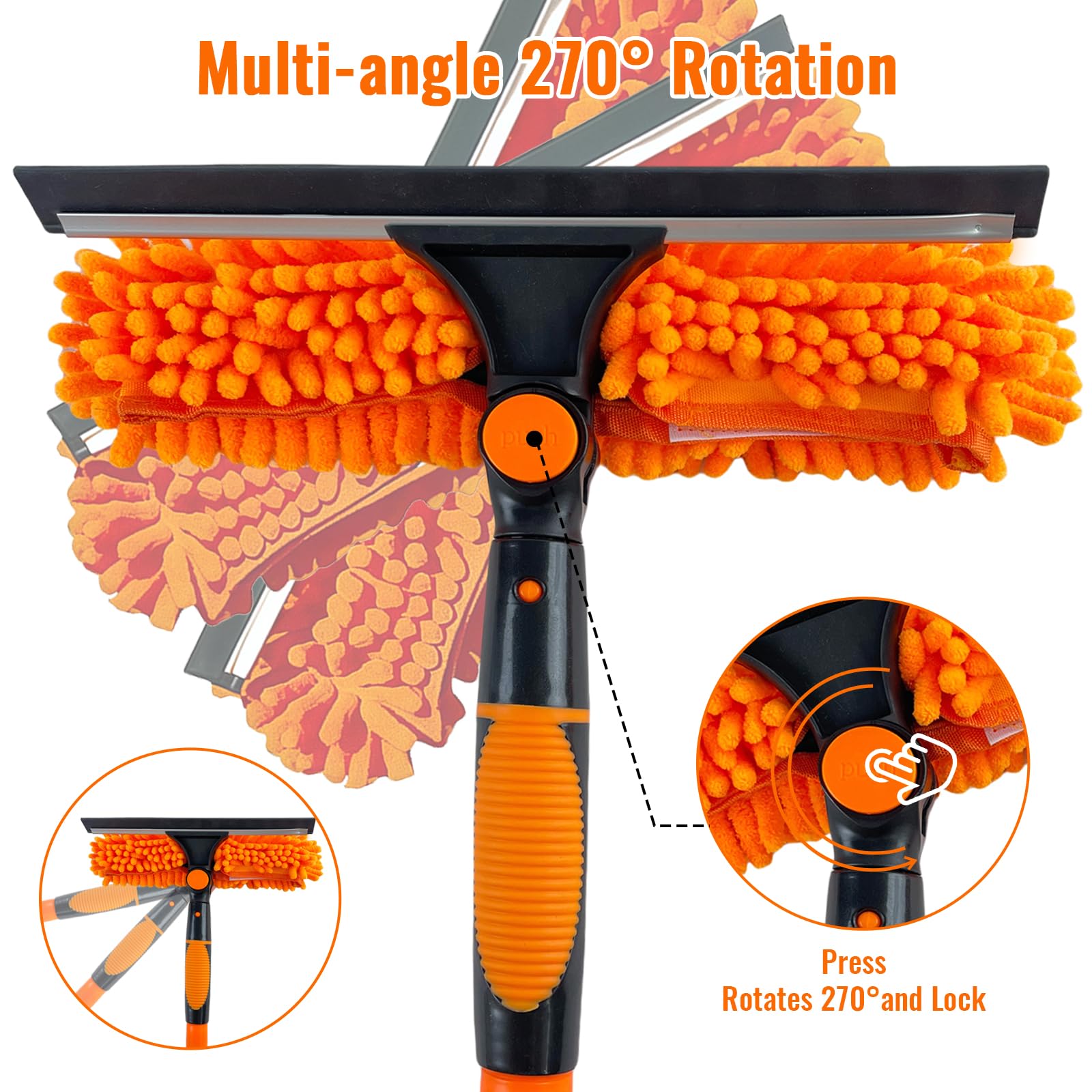 4.5m 15ft Telescopic Window Cleaning Brush Kit Extending Wash Head Squeegee High