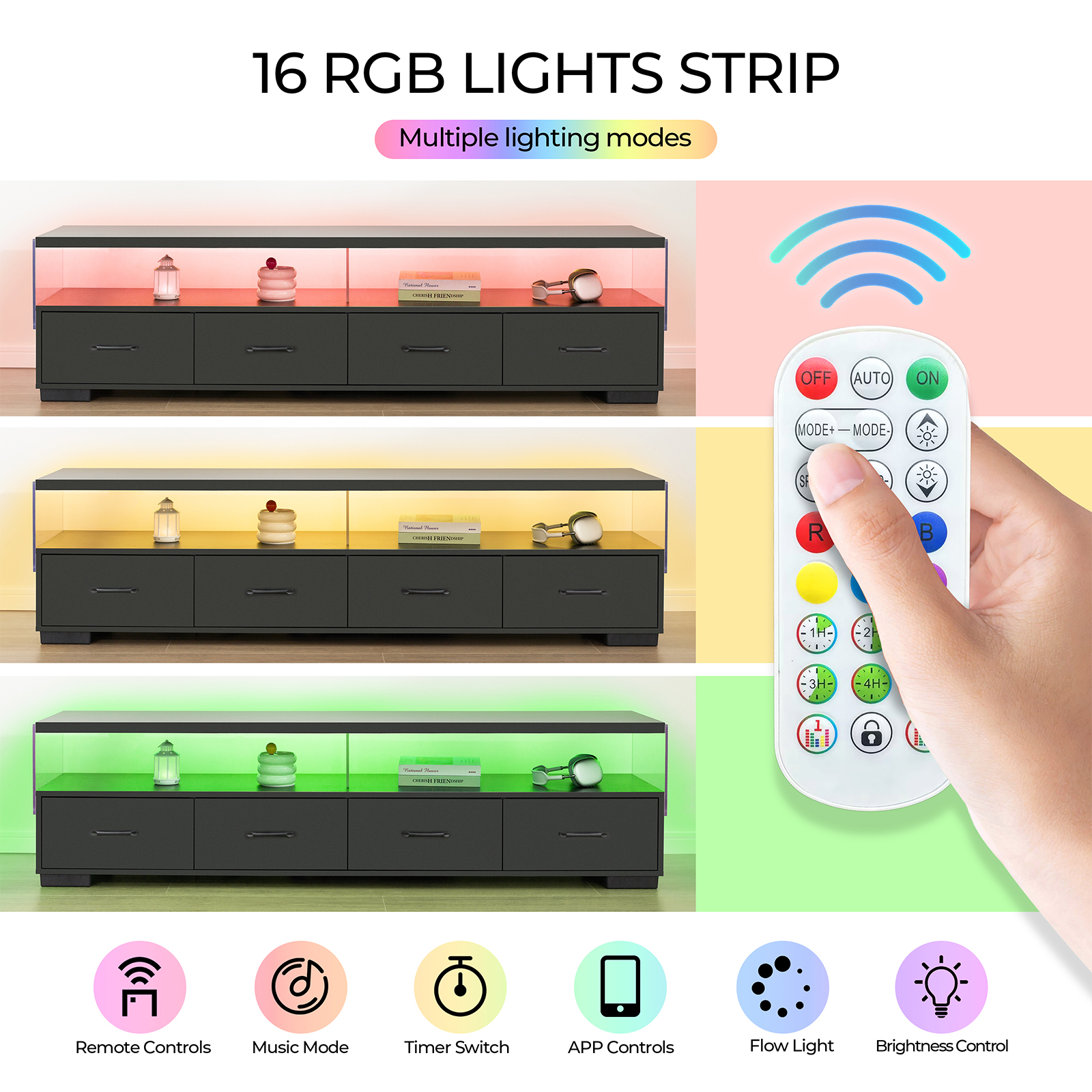 4-Drawer TV Stand For TV's Up To 80 Flat Screen Cabinet Door Living Room Storage Entertainment Center, Black
