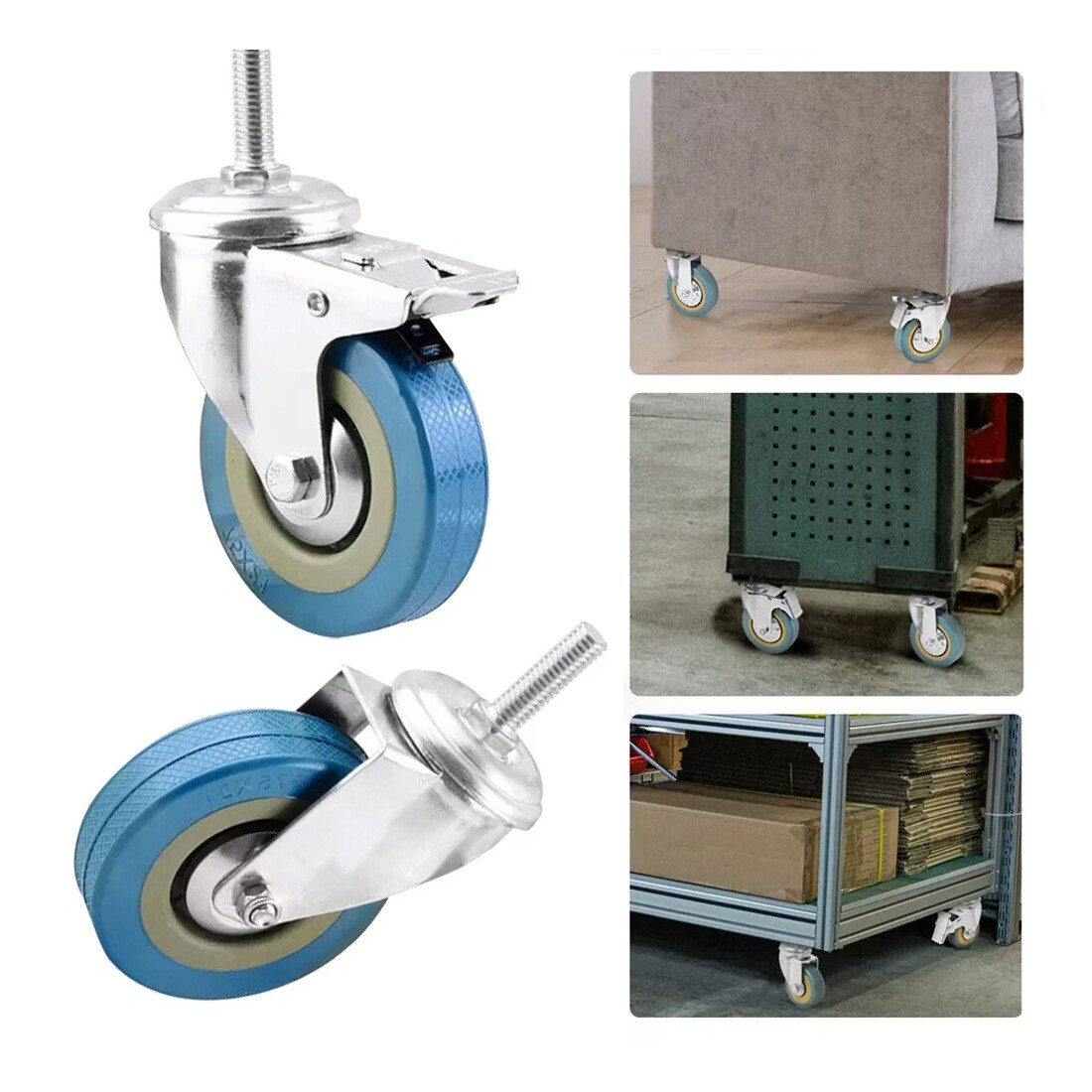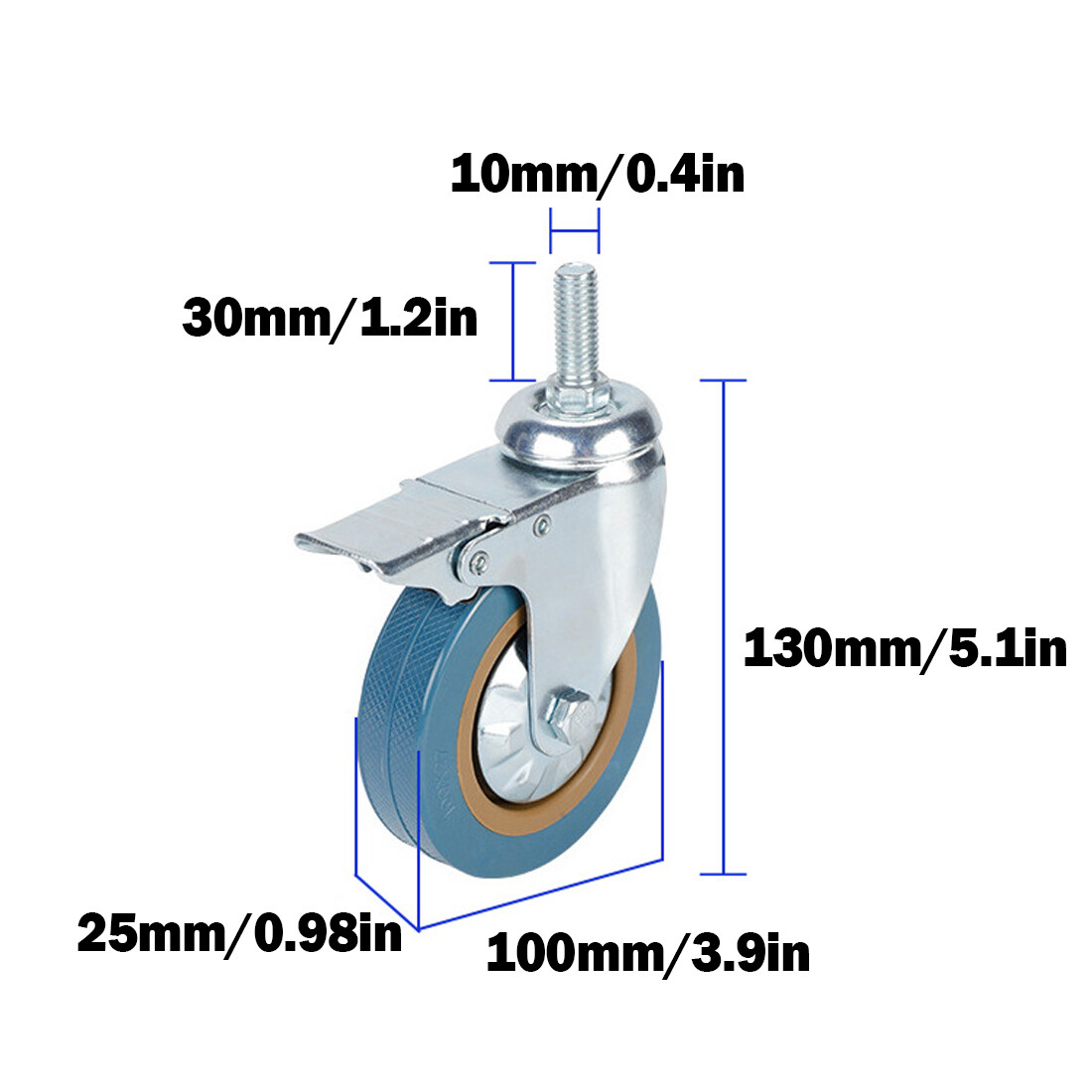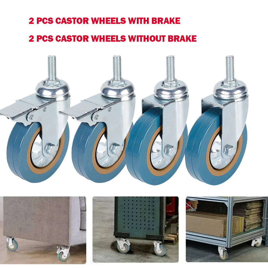 • 100% Brand new and high quality.Threaded M10 screw bolt fixing.Included 2x swivel with brake and 2x swivel castor wheels.Ideal for a huge variety of uses from DIY to industrial applications, home, schools, shops & hospitals.