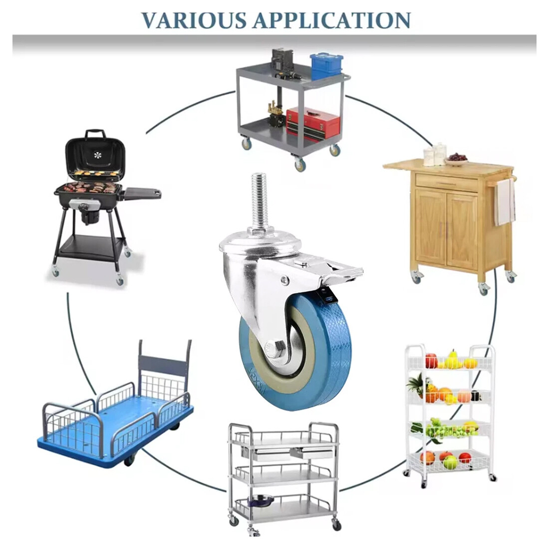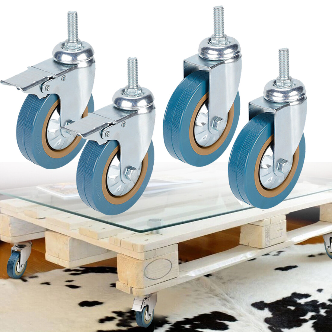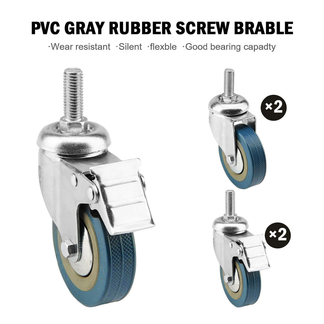 • 100% Brand new and high quality.Threaded M10 screw bolt fixing.Included 2x swivel with brake and 2x swivel castor wheels.Ideal for a huge variety of uses from DIY to industrial applications, home, schools, shops & hospitals.