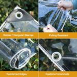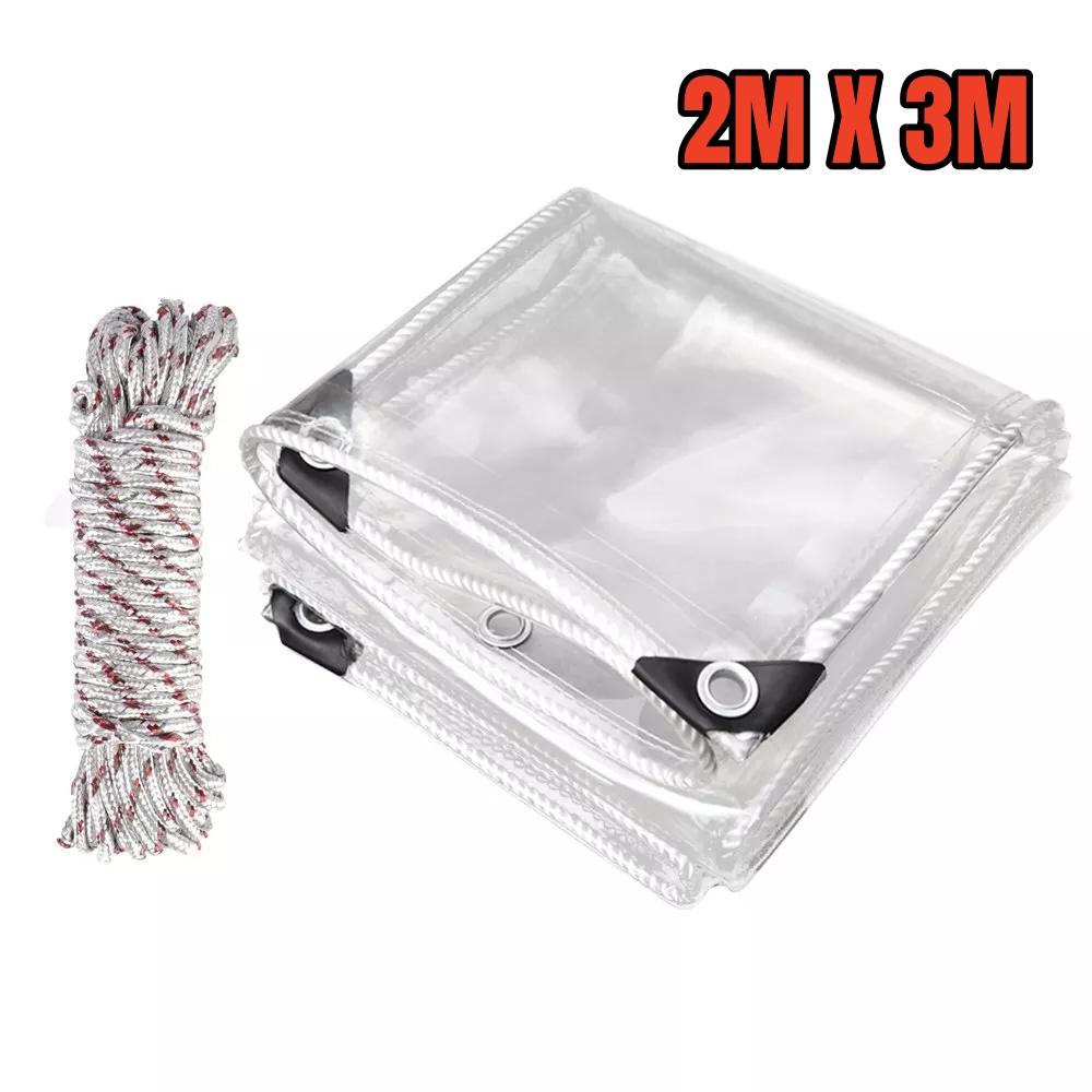 2M X 3M • @Very useful plastic cloth: This transparent rainproof tarpaulin is soft, translucent, UV-resistant, dustproof, weatherproof and sunproof. It features high heat resistance, tear resistance, water resistance, sun protection, weather resistance, etc., suitable for all seasons • @Features: high-quality aluminum alloy metal perforation, polyester fiber edge stitching, rubber triangular sleeves on the corners, reinforced corners, strong and durable, and can quickly and easily attach the tarpaulin