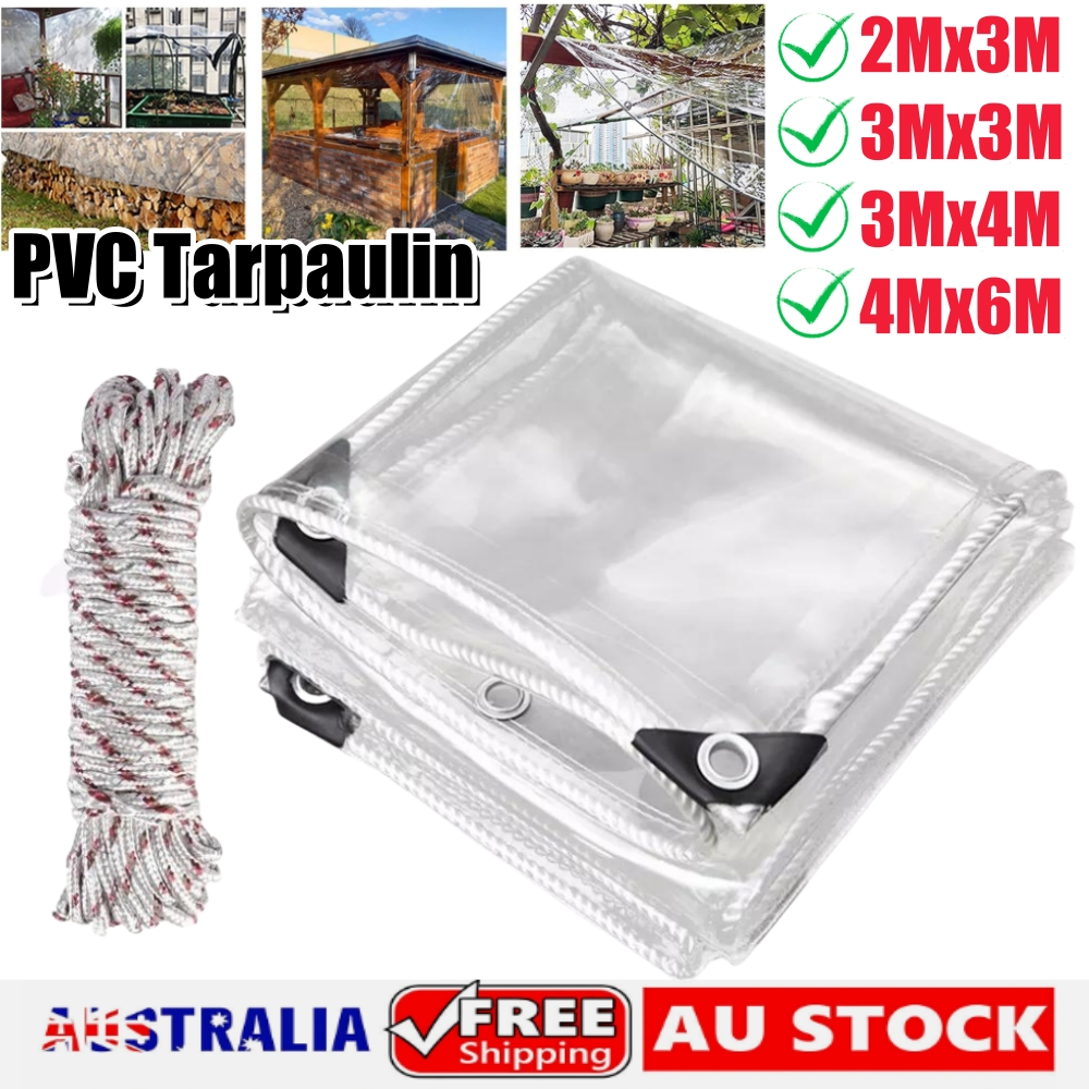 420GSM Heavy Duty Clear PVC Tarpaulin Cloth Transparent Tarps Grommets 2M X 3 M