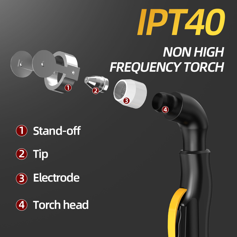 • Non-touch arc starting – start the arc without touching the metal surface, produce less dross when cutting paint, rust or uneven metal, less wear on nozzle, and get a cleaner, more consistent cut. Application style LED control – 6-15 seconds arc starting time, 2-10 seconds afterflow time and air pressure range reminder, quick adjustment for stable, high-quality cutting.