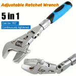 5-in-1 10” Adjustable Ratchet Wrench With 180° Foldable Head – Dual Torque And Pipe Tool, No Assembly Required