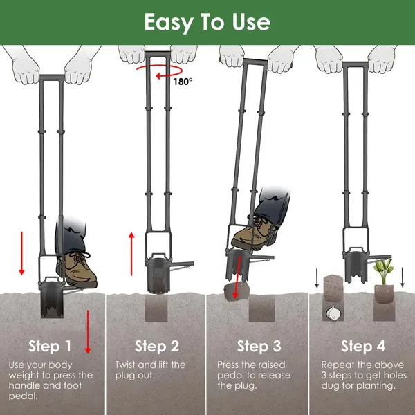 5 In 1 Bulb Planter Tool Long Handle Gardening Bulb Transplanter With Gloves Brush Serrated Base Dual Pedal Digging Holes To Plant Tulips Iris Daffodil