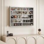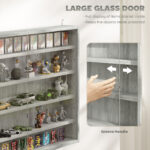 5-Tier Display Cabinet, Wall-Mounted Display Case with 2 Glass Doors and Adjustable Shelves, Gray