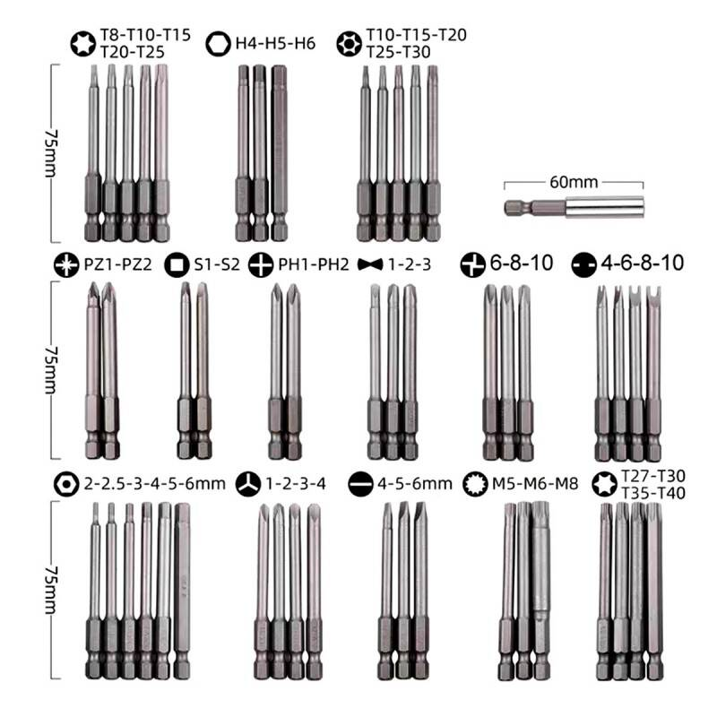 50-Piece Magnetic Screwdriver Bit Set With Extra Long Bits And Portable Case Building Supplies