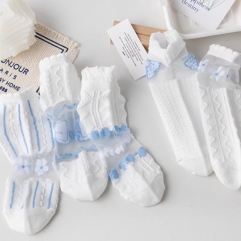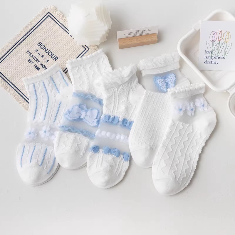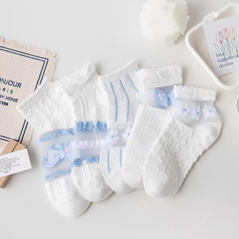 5pairs Summer Thin Shallow Mouth Boat Socks, Crystal Short Socks, Breathable Glass Stockings