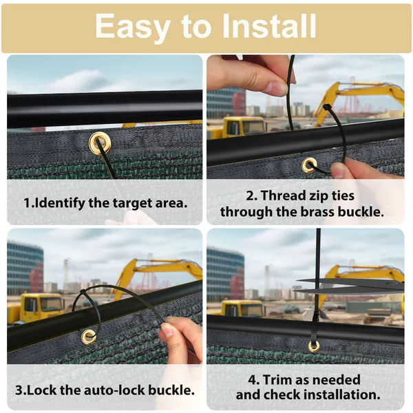 • Privacy mesh screen is incredibly simple; just use the included zipper to secure the grommets on both sides of the fence; ensuring a snug fit against the fence and effortless enhancement of privacy