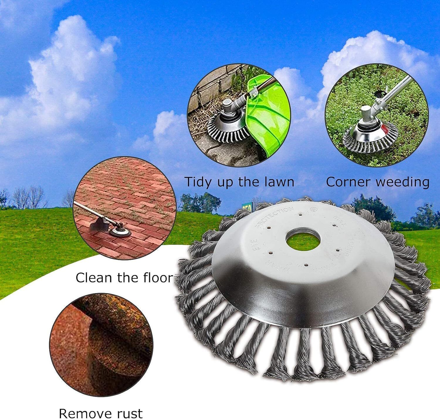 6 8 Grass Strimmer Head Trimmer Brush STEEL Wire Wheel Garden Weed Trimmer