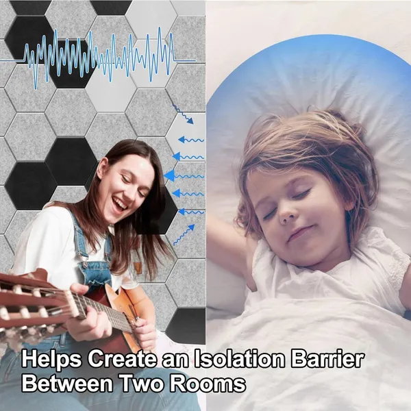 6″ Hexagon Sound Panels, 9mm Thick Acoustic Panels, Polyester Fiber Wall Tiles, 12-Pack For Home Studio/Office Noise Reduction