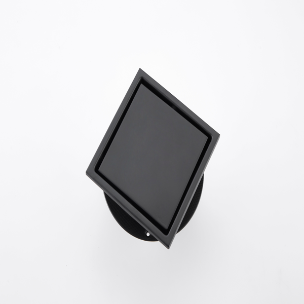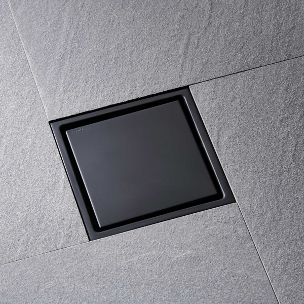 6 Inch Square Shower Drain With 2-in-1 Flat & Tile Insert Removable Cover, 304 Stainless Steel With Flange And Hair Strainer, Matte Black