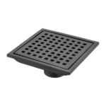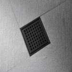 6 Inch Square Shower Drain With Removable Square Patterned Grate, 304 Stainless Steel With Flange And Hair Strainer, Matte Black