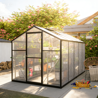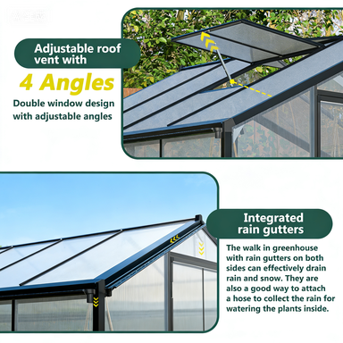 6×10 Ft Outdoor Polycarbonate Greenhouse Kit With Aluminum Frame, Walk-in Garden Green House With Lockable Door & Adjustable Roof Vent, Backyard, Patio