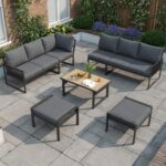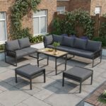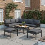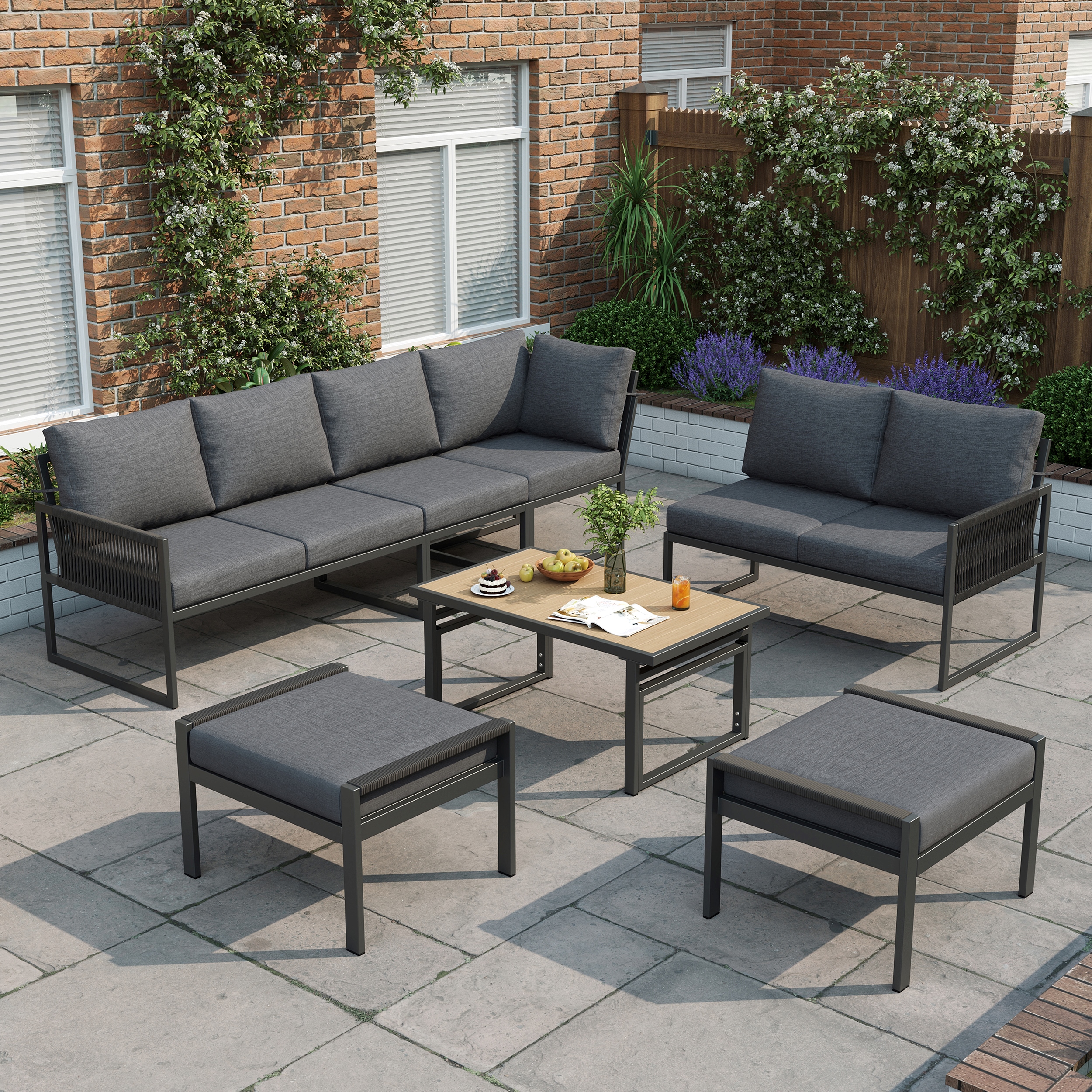 7-8 Seater Outdoor Garden Set With Height Adjustable Coffee Table And Compact Seater Stools, Corner Sofa With Polyester Rope, Weatherproof Outdoor Patio Dining Lounge Set For Balcony And Terrace, Grey