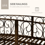 7′ Metal Arch Garden Bridge Arc Footbridge with Side Railings Decorative Scrollwork, Bronze