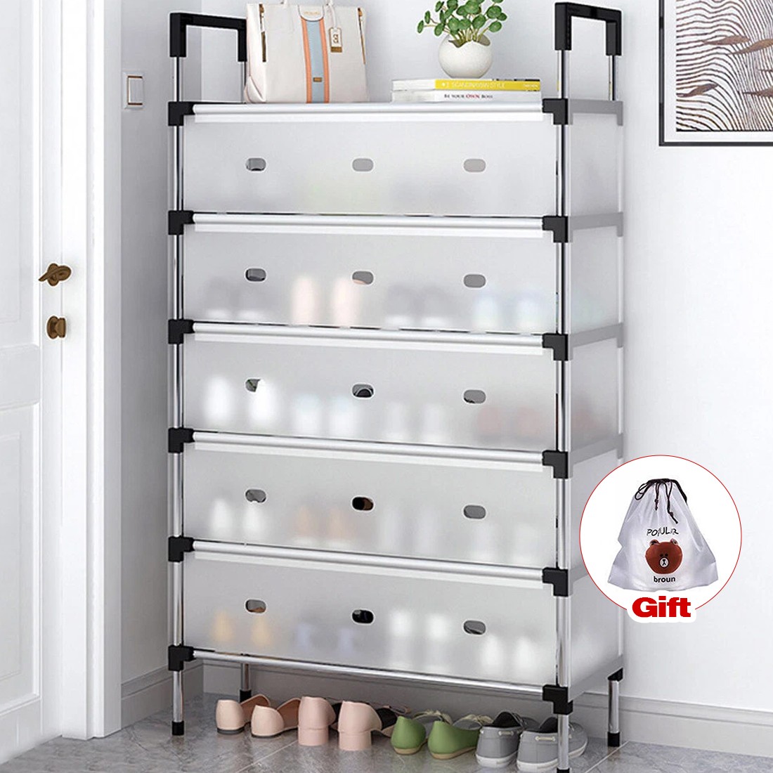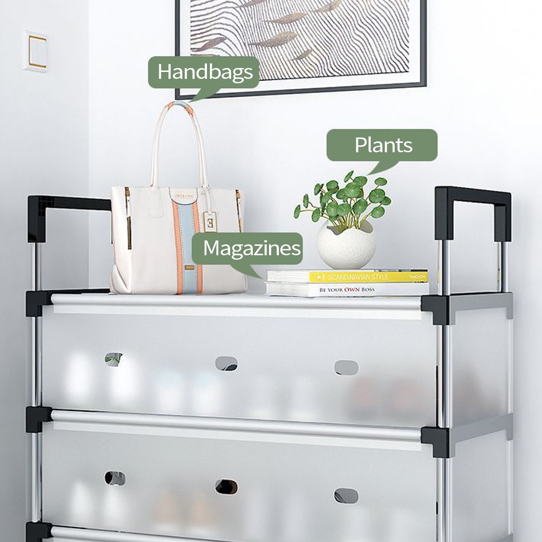 • – Multi-purpose: In addition to shoes, this shoe rack can also be used to store books, toys, bags, and other items, making it a versatile storage solution.