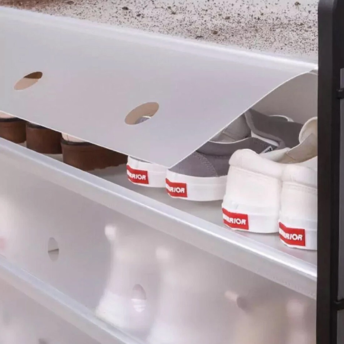 • – Shoe storage rack: This shoes rack features multiple layers and a large capacity, making it perfect for storing multiple pairs of shoes.