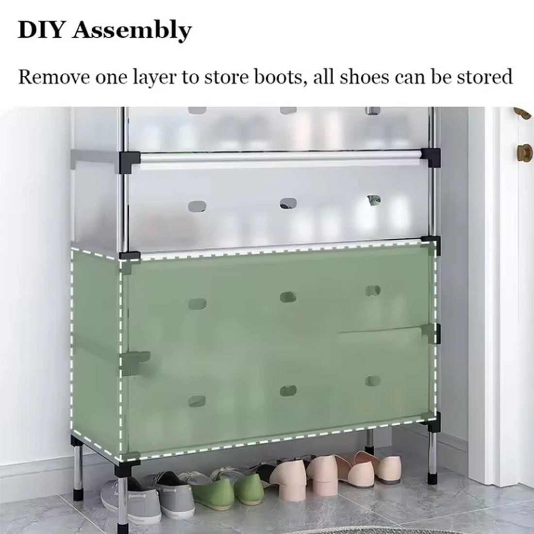 • – Easy installation: The shoe cabinet storage can be easily assembled without the need for tools, making it quick and convenient to set up.