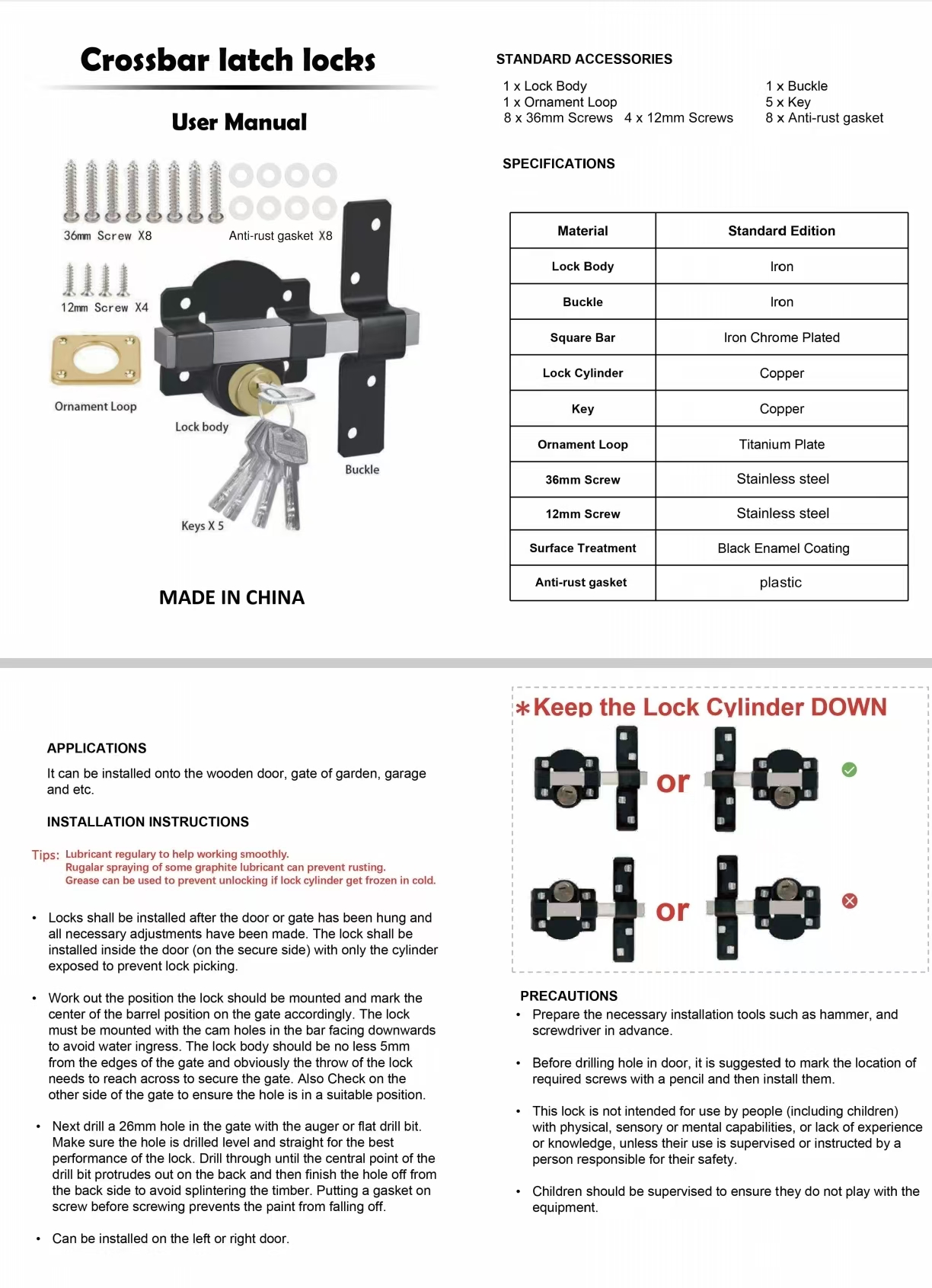 70mm Security Garden Shed Gate Lock Long Throw Locking Double Locking UK