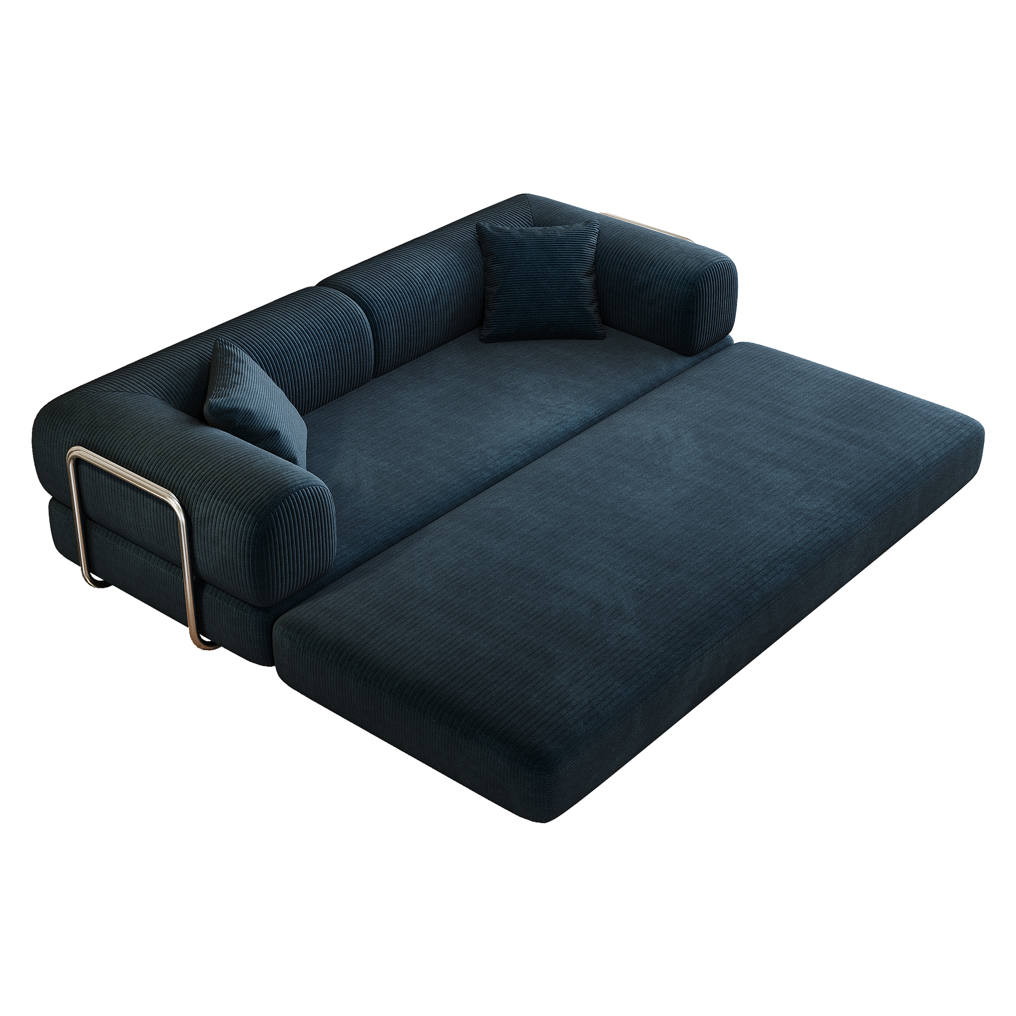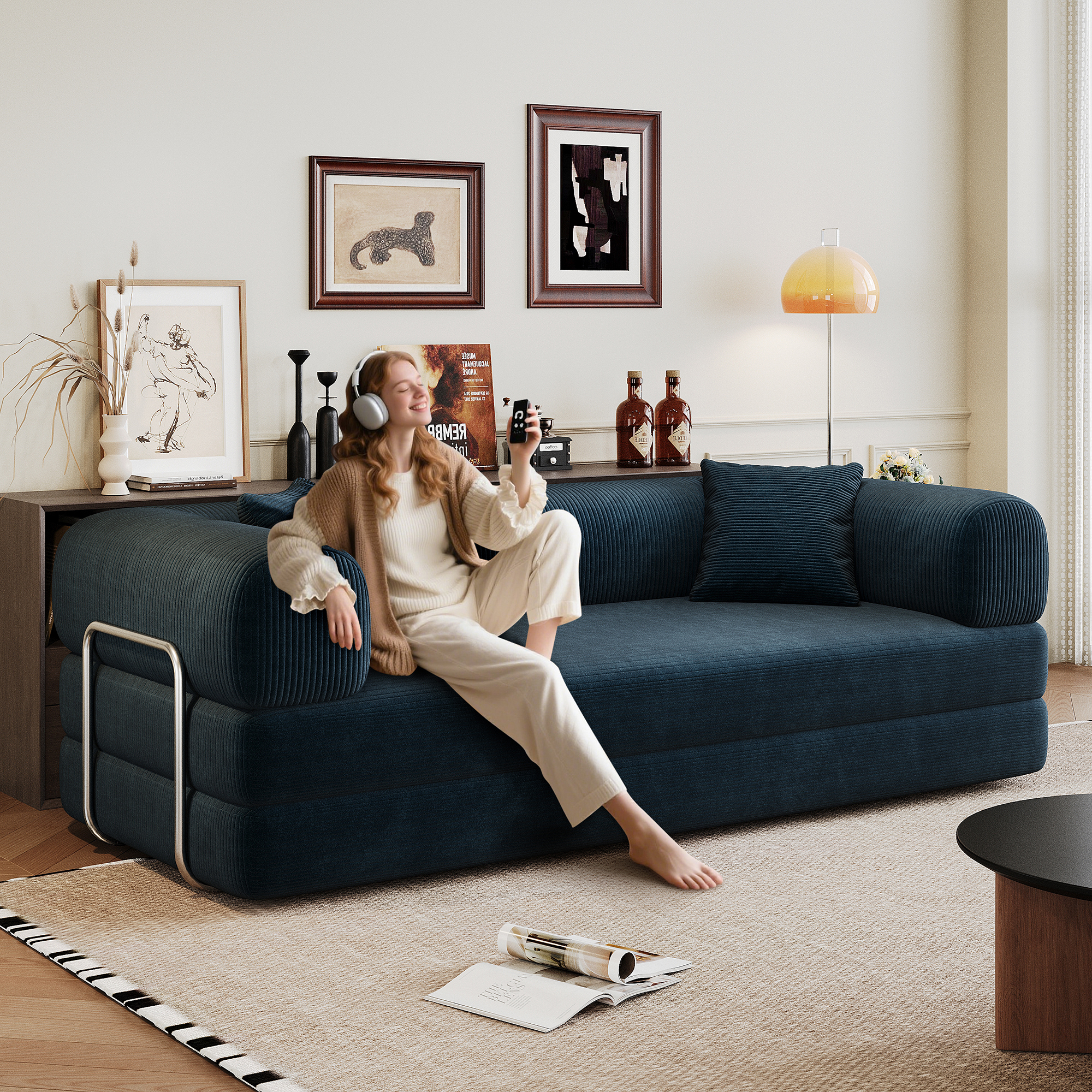 78.8 Compression Sofa,Convertible Floor Sofa Bed-with Pillow Back Support Armrest,Comfy Futon Couch Sleeper Bed,Loveseats Boneless Modular Sectional Sofa,Corduroy Fabric,for Living Room,Bedroom,Blue