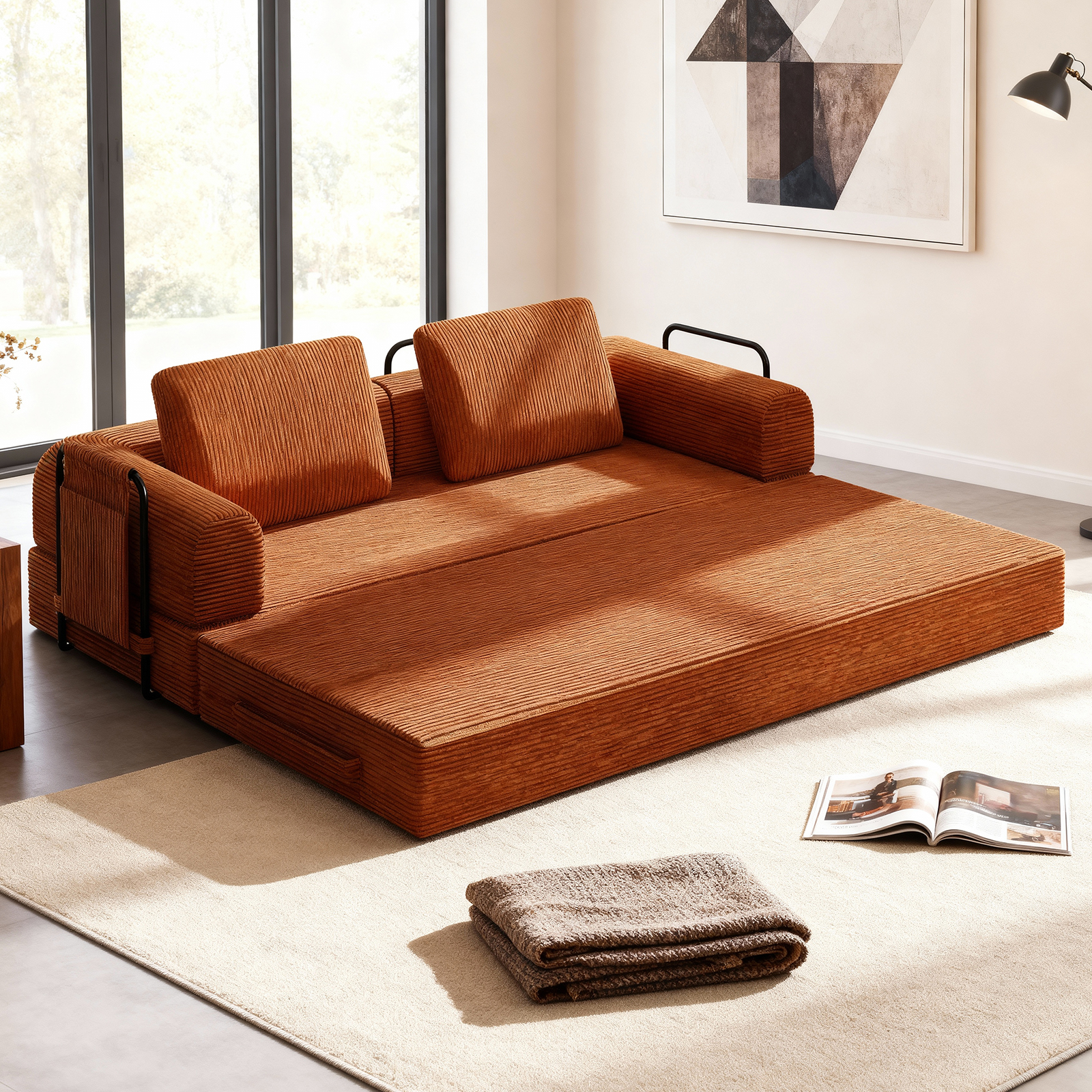 78 Inch Convertible Sleeper Sofa Bed, Futon Boneless Couch Lounge Loveseat With Pull Out Bed, No Assembly Required is designed for style, comfort, and everyday use.