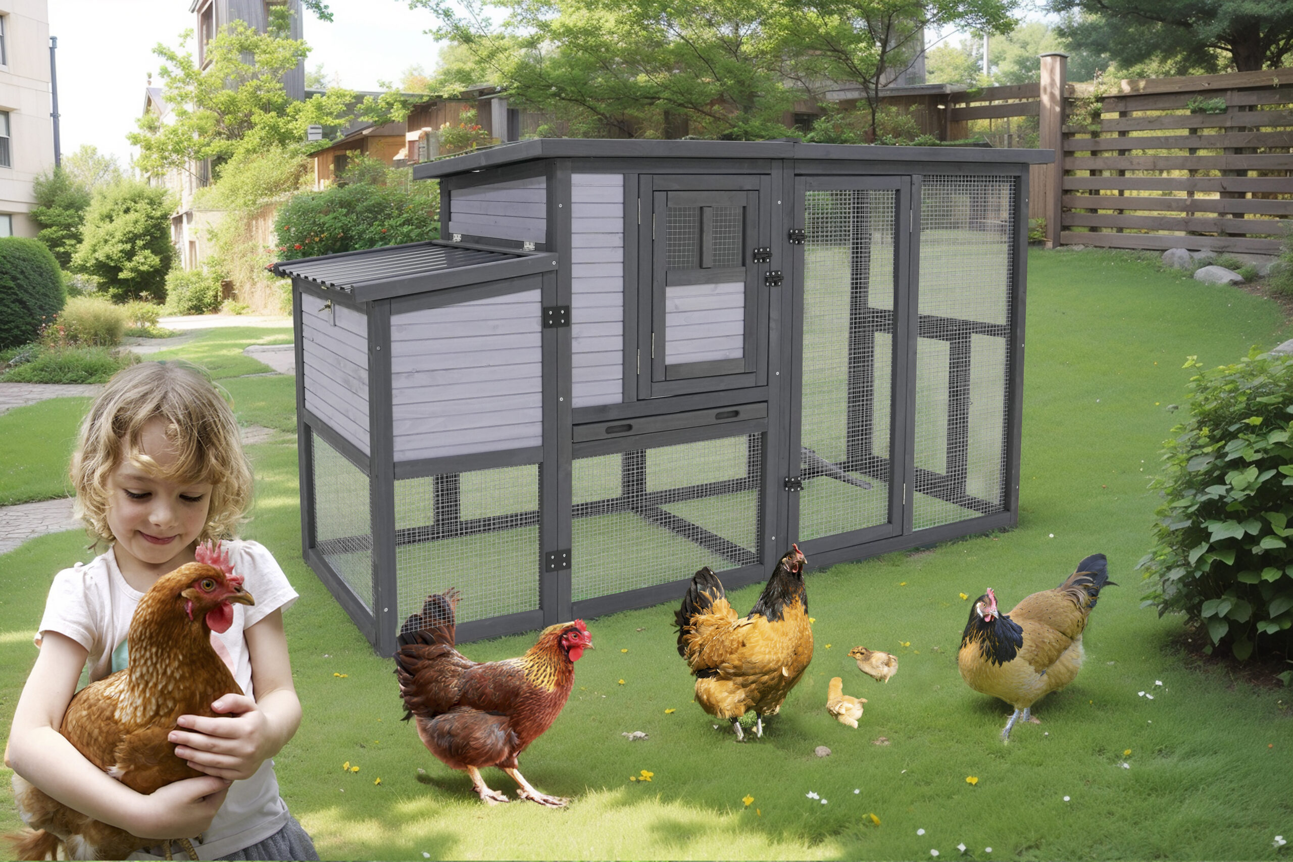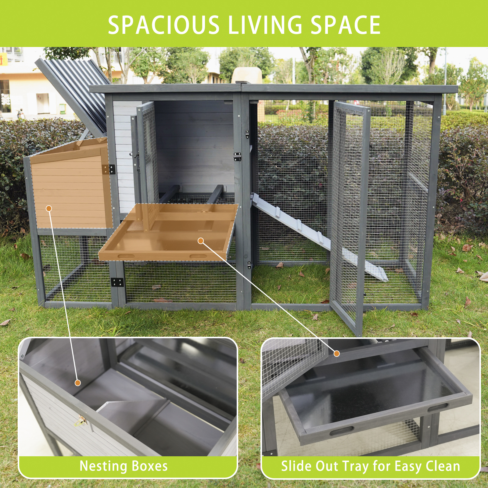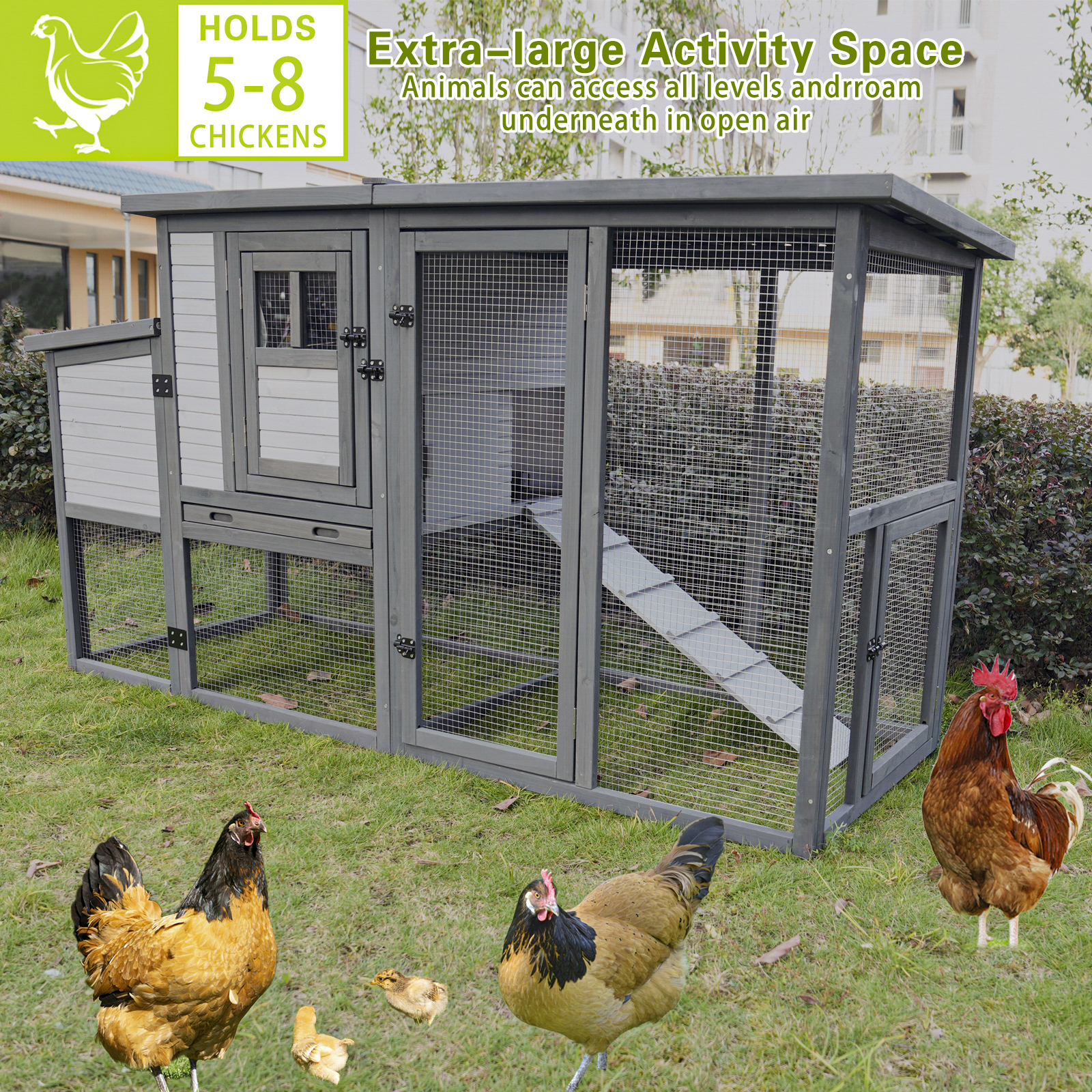79Large Chicken Coop With Upgraded Perches, Wooden Outdoor Chicken Cage With Large Nesting Box, Weatherproof Open Asphalt Roof &Removable Bottom, Duck House, Rabbit Hutch
