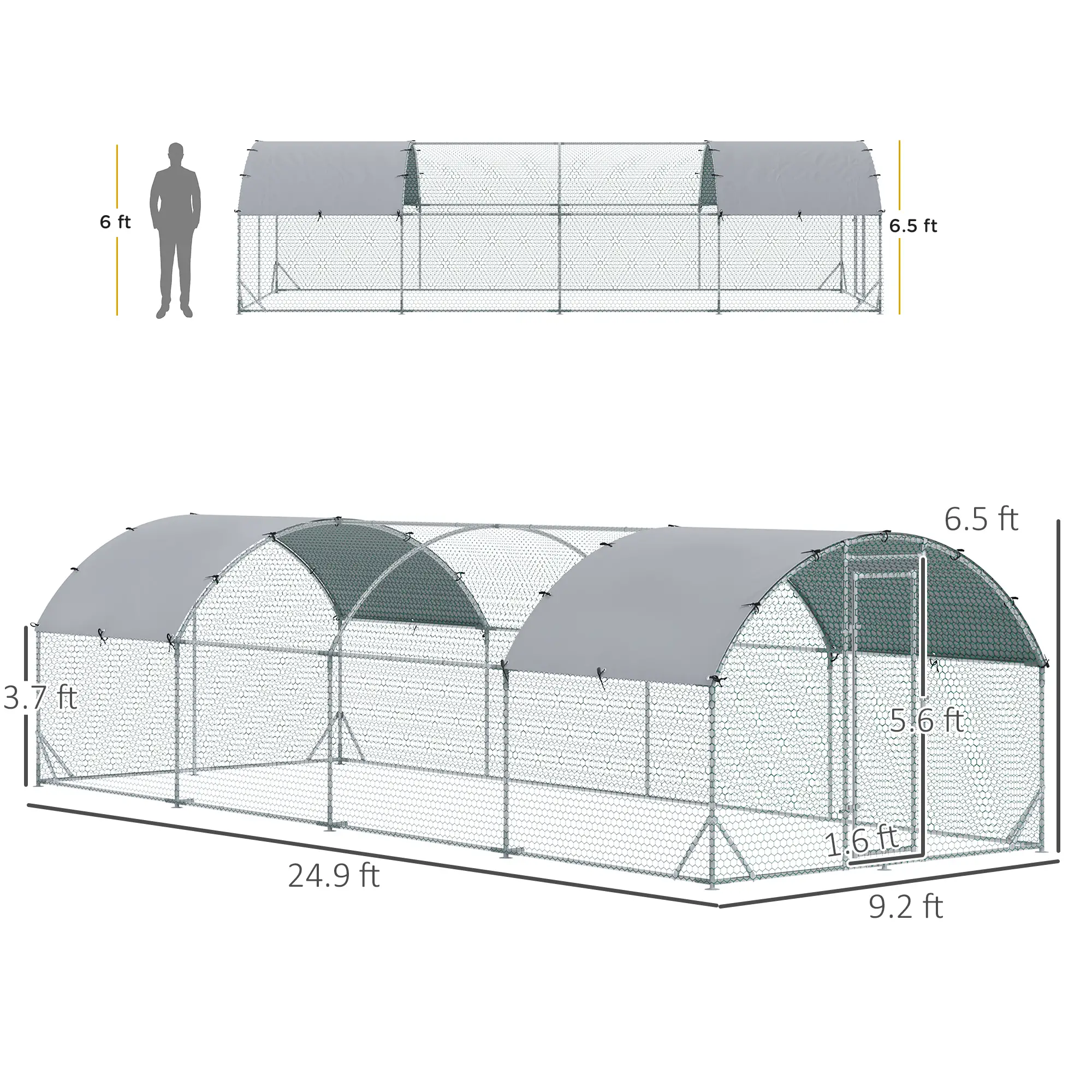 9.2’W X 24.9’D X 6.5’H Chicken Coop Large Metal Chicken Coop For Yard, Outdoor, Duck, Rabbit