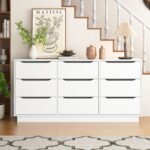 9 Drawer Dresser For Bedroom With Deep Drawers, Large Floor Wood Dressers & Chest Of Drawers , Modern White Long Dressers For Closet Living Room