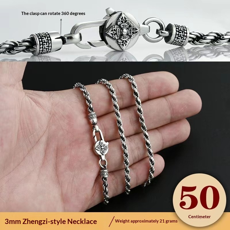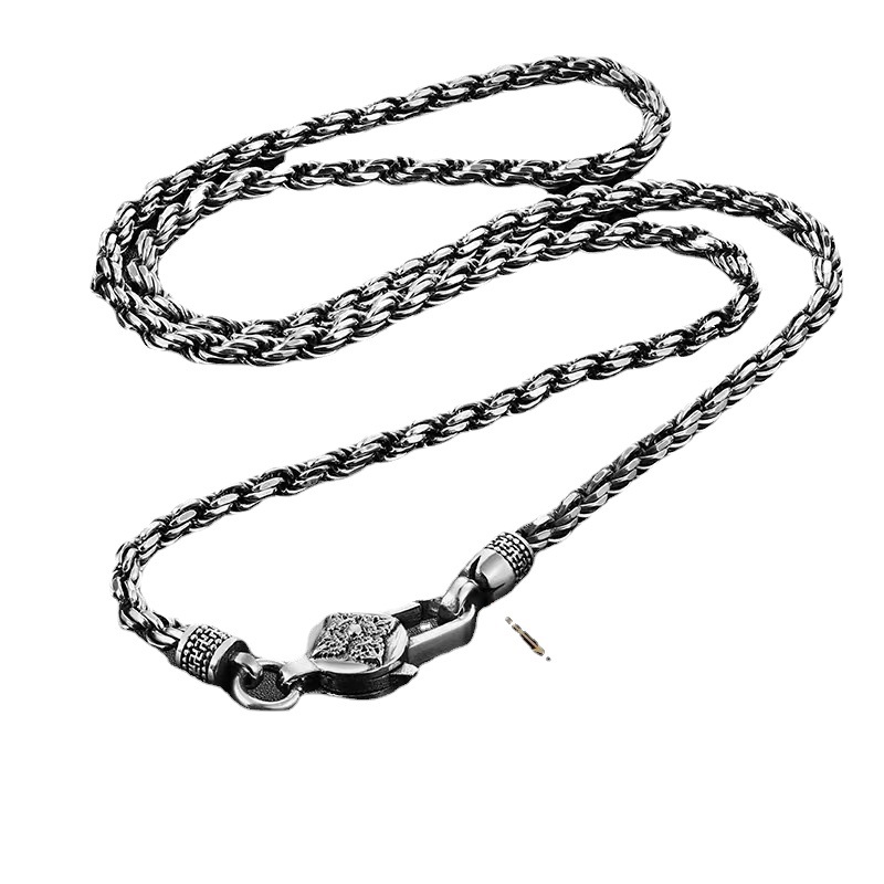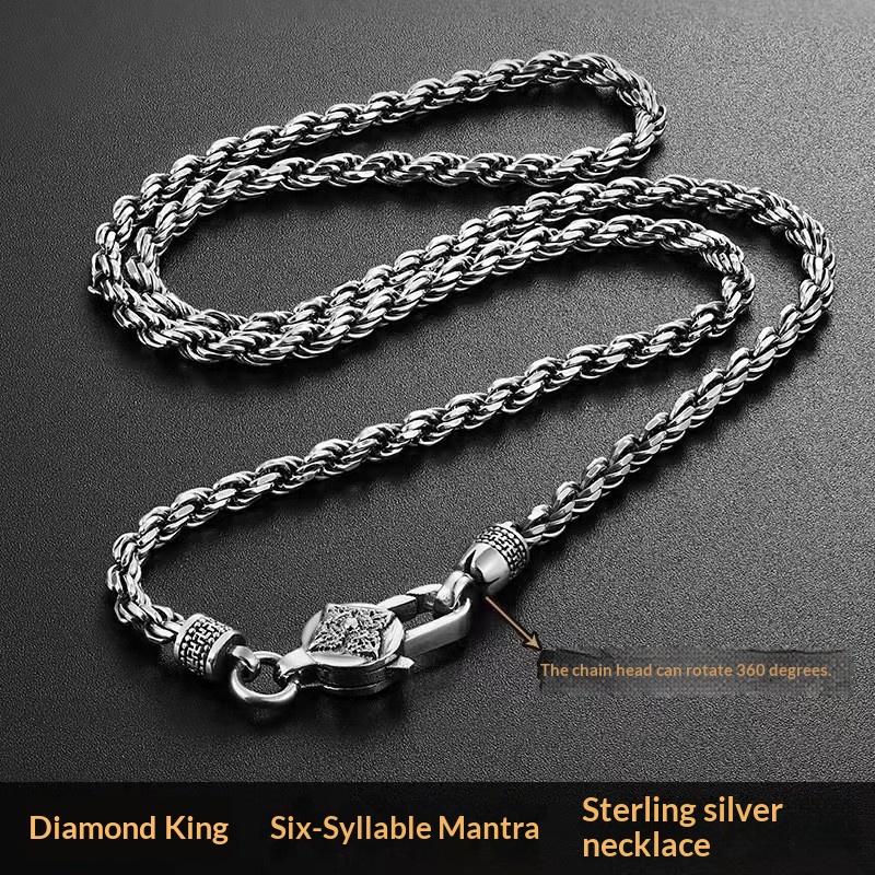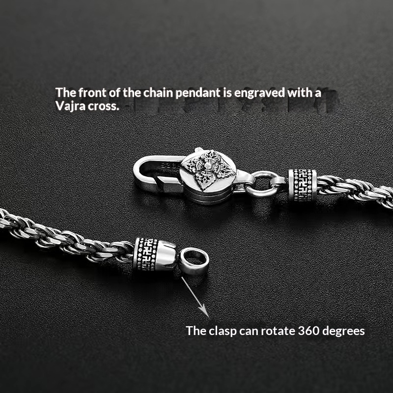 925 Silver Vajra Braided Six-Character Mantra Hemp Rope Chain
