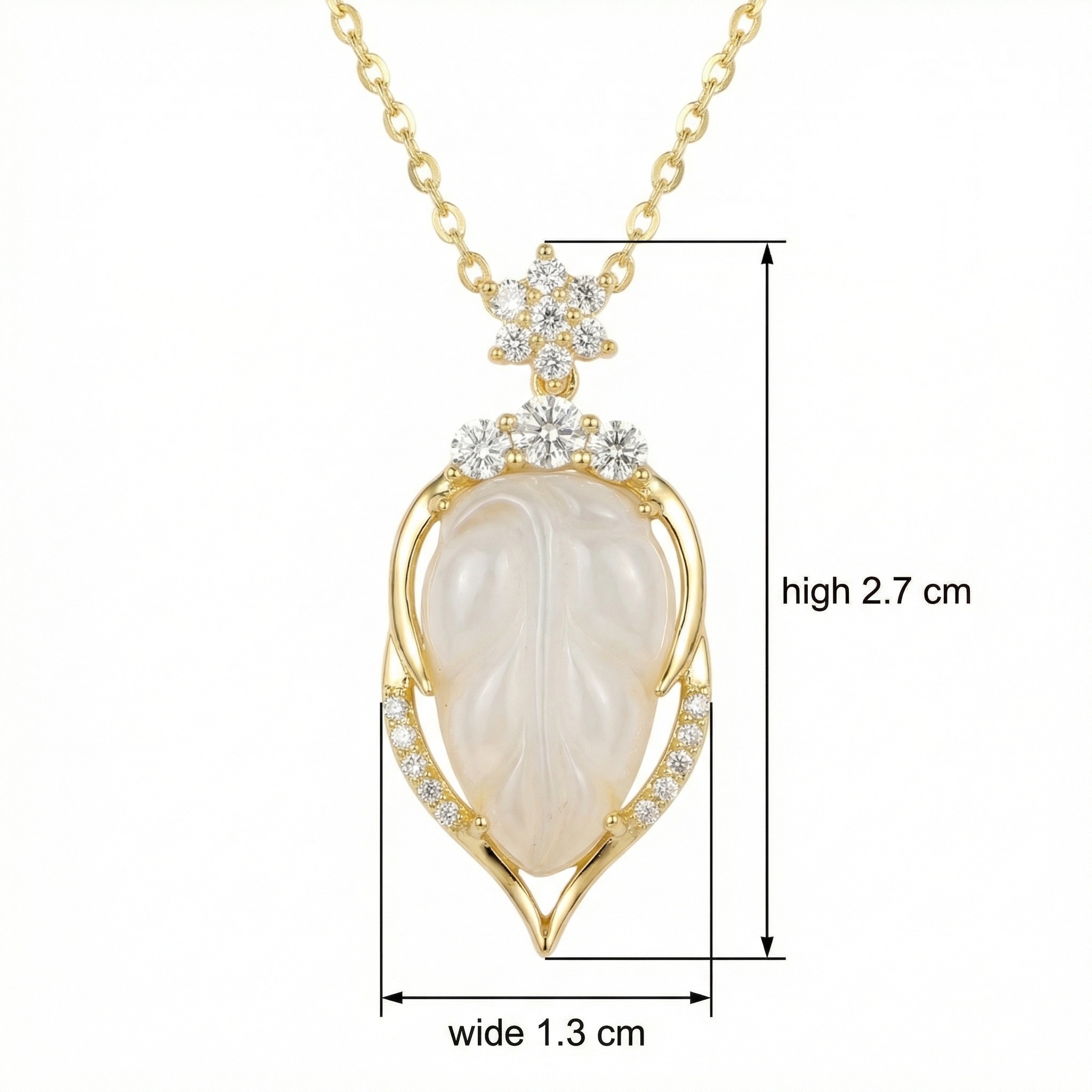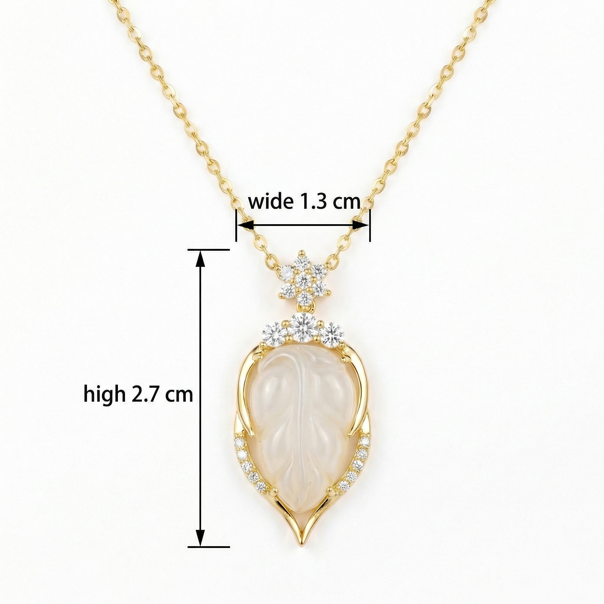 Be the first to review “925 Sterling Silver Elegant Carved White Jade Leaf Pendant Necklace with Glistening Accents”