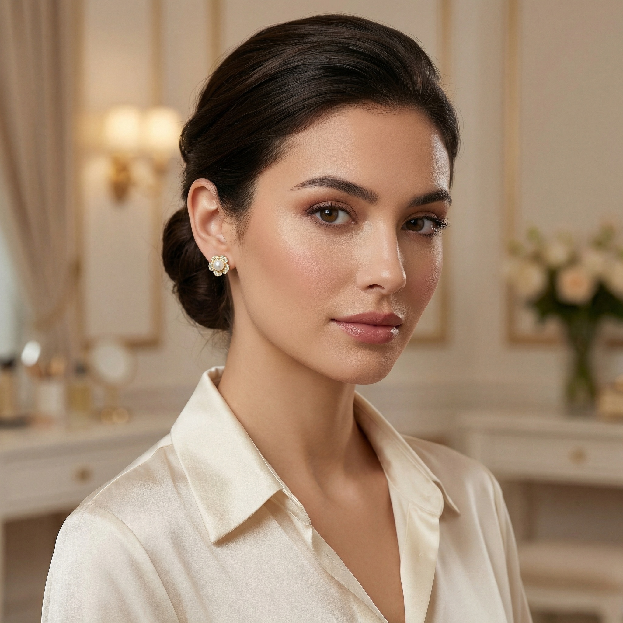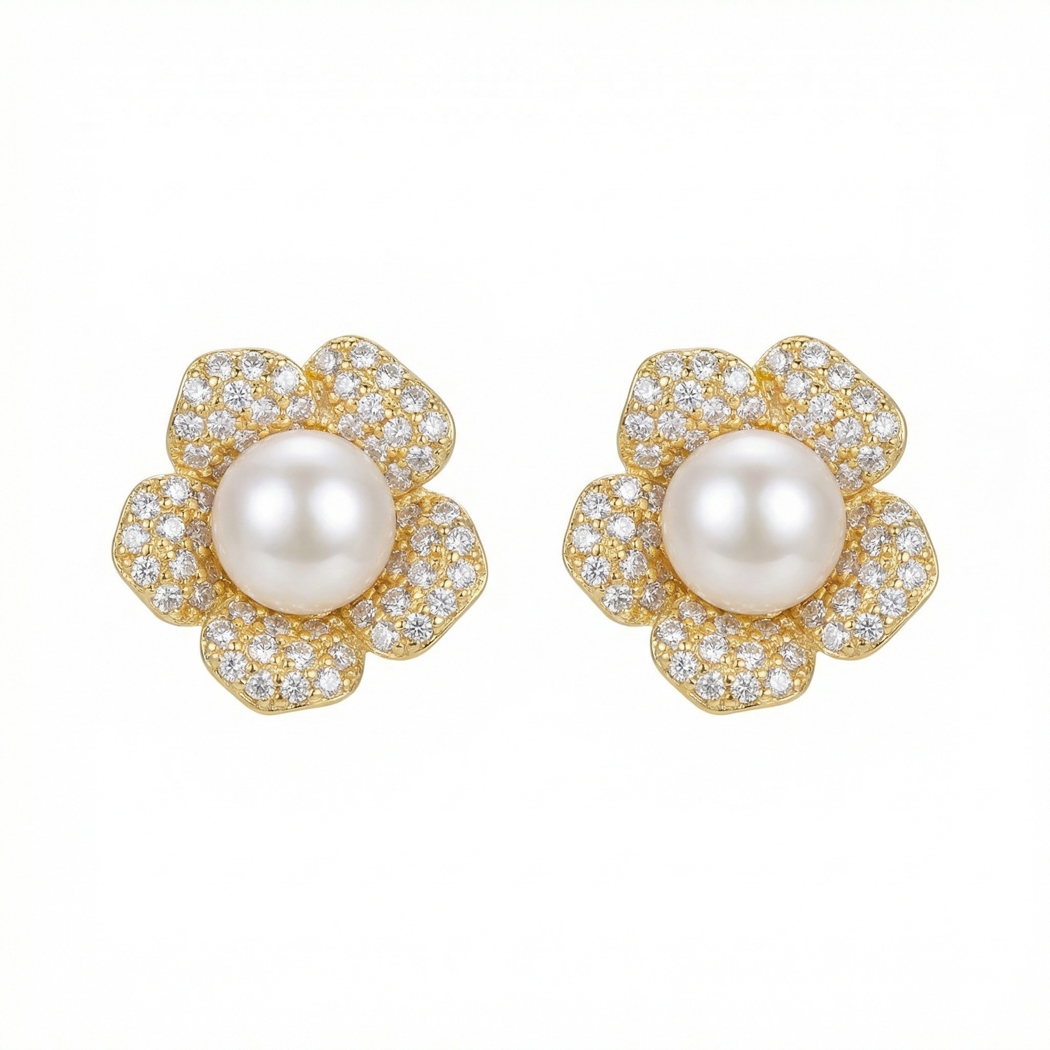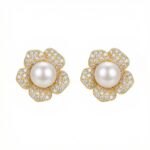 925 Sterling Silver Elegant Flower-Shaped Cultured Pearl and Sparkling Cubic Zirconia Stud Earrings