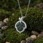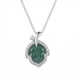 Be the first to review “925 Sterling Silver Elegant Green Jade Leaf Pendant Necklace with Shimmering Stone Halo”