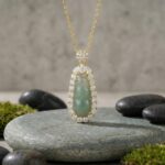 Be the first to review “925 Sterling Silver Elegant Green Jadeite Pea Pod Pendant Necklace with Sparkling Gemstone Halo”