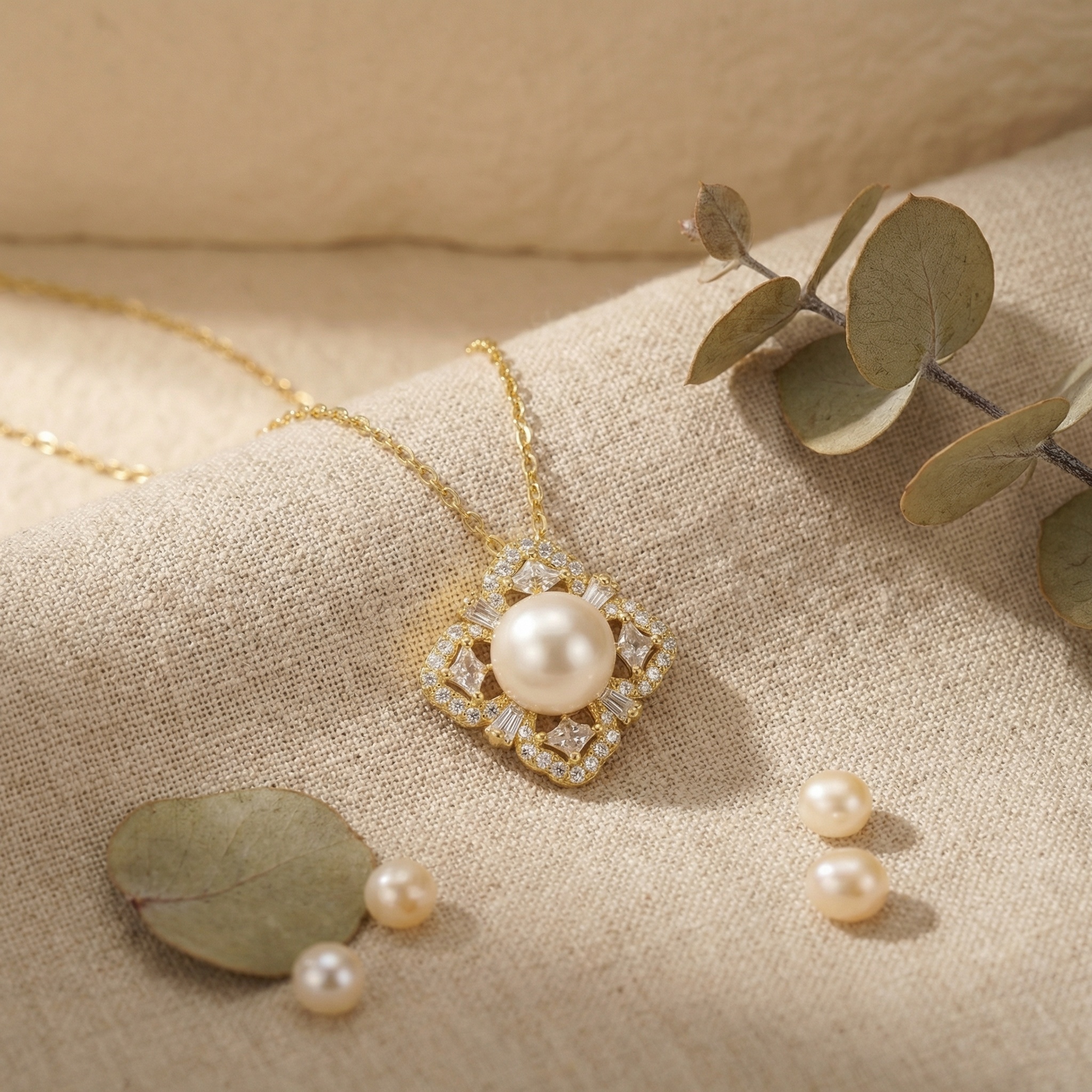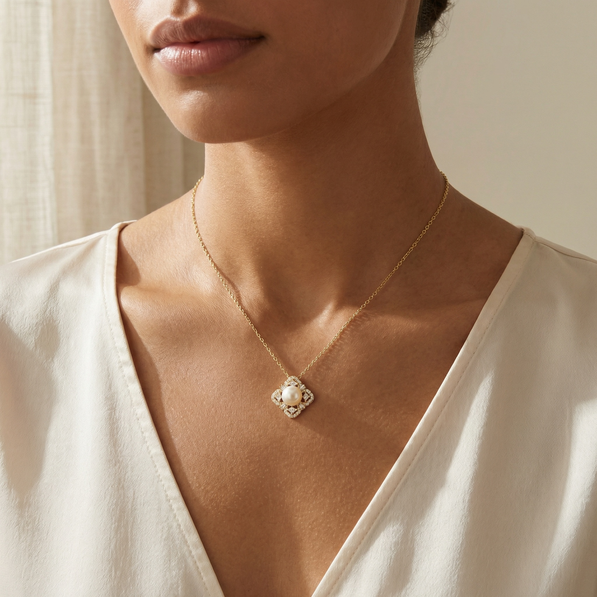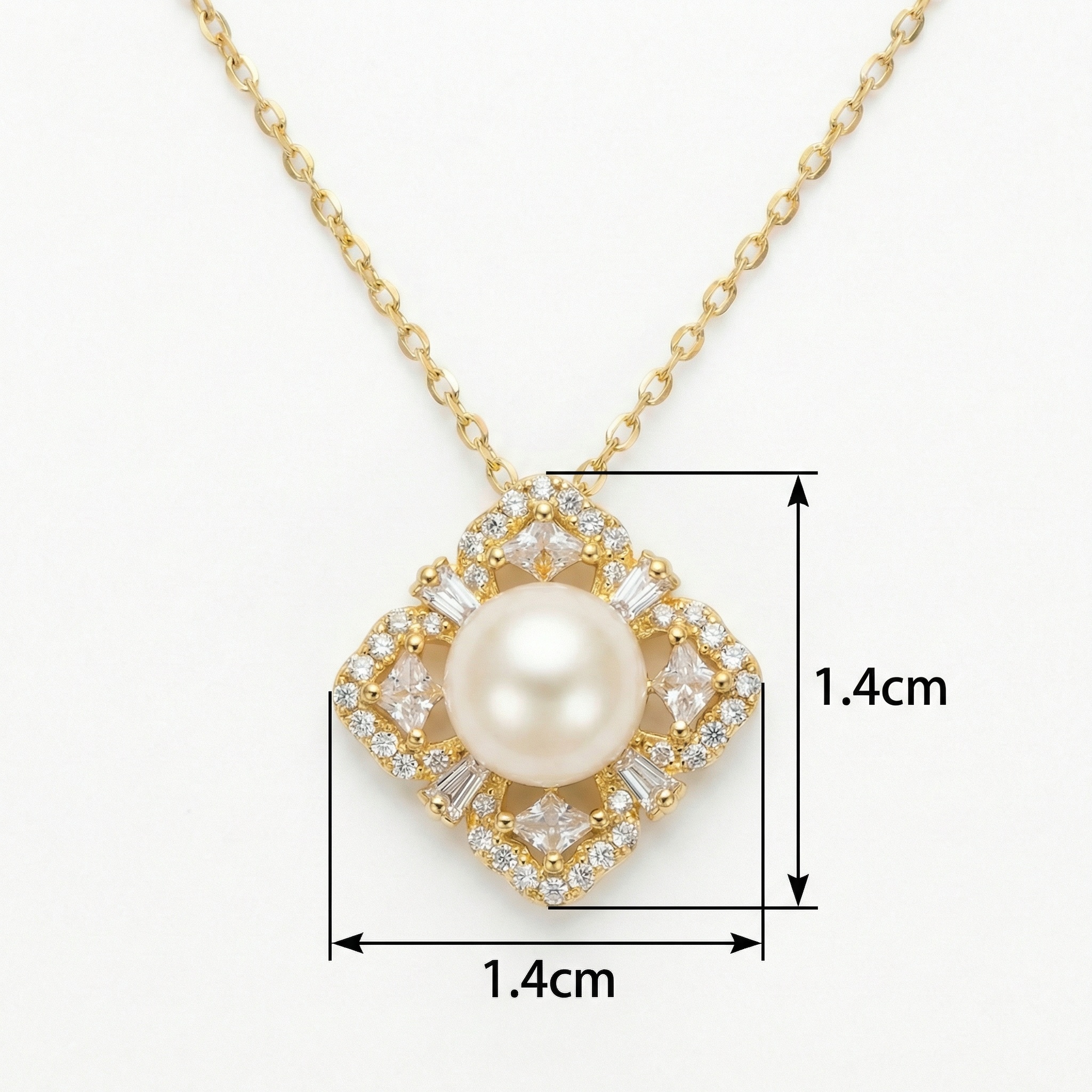 925 Sterling Silver Elegant Luminous Pearl and Diamond Vintage-Inspired Geometric Pendant Necklace is designed for style, comfort, and everyday wear.