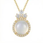 925 Sterling Silver Elegant Moonstone Cabochon Pendant with Brilliant Gemstone Halo and Floral Cluster is designed for style, comfort, and everyday use.