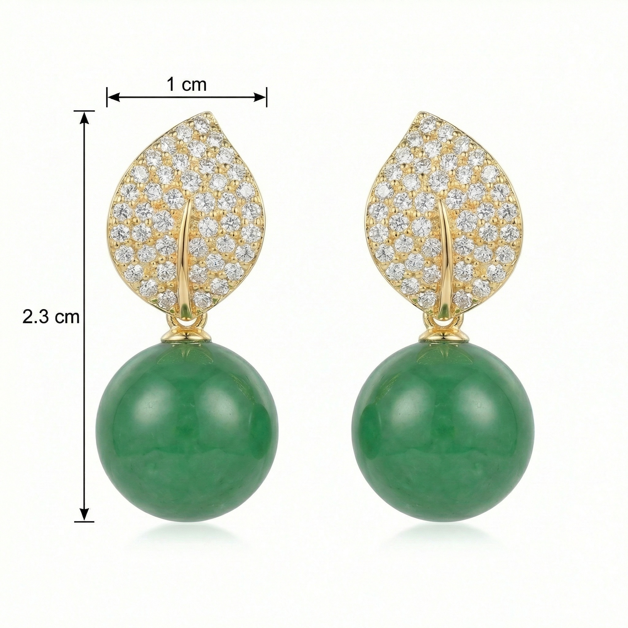 925 Sterling Silver Elegant Nature-Inspired Leaf Pave Accents and Green Jade Spherical Drop Earrings