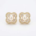 Be the first to review “925 Sterling Silver Elegant Pearl Quatrefoil Stud Earrings with Sparkling Baguette and Pavé Accents”