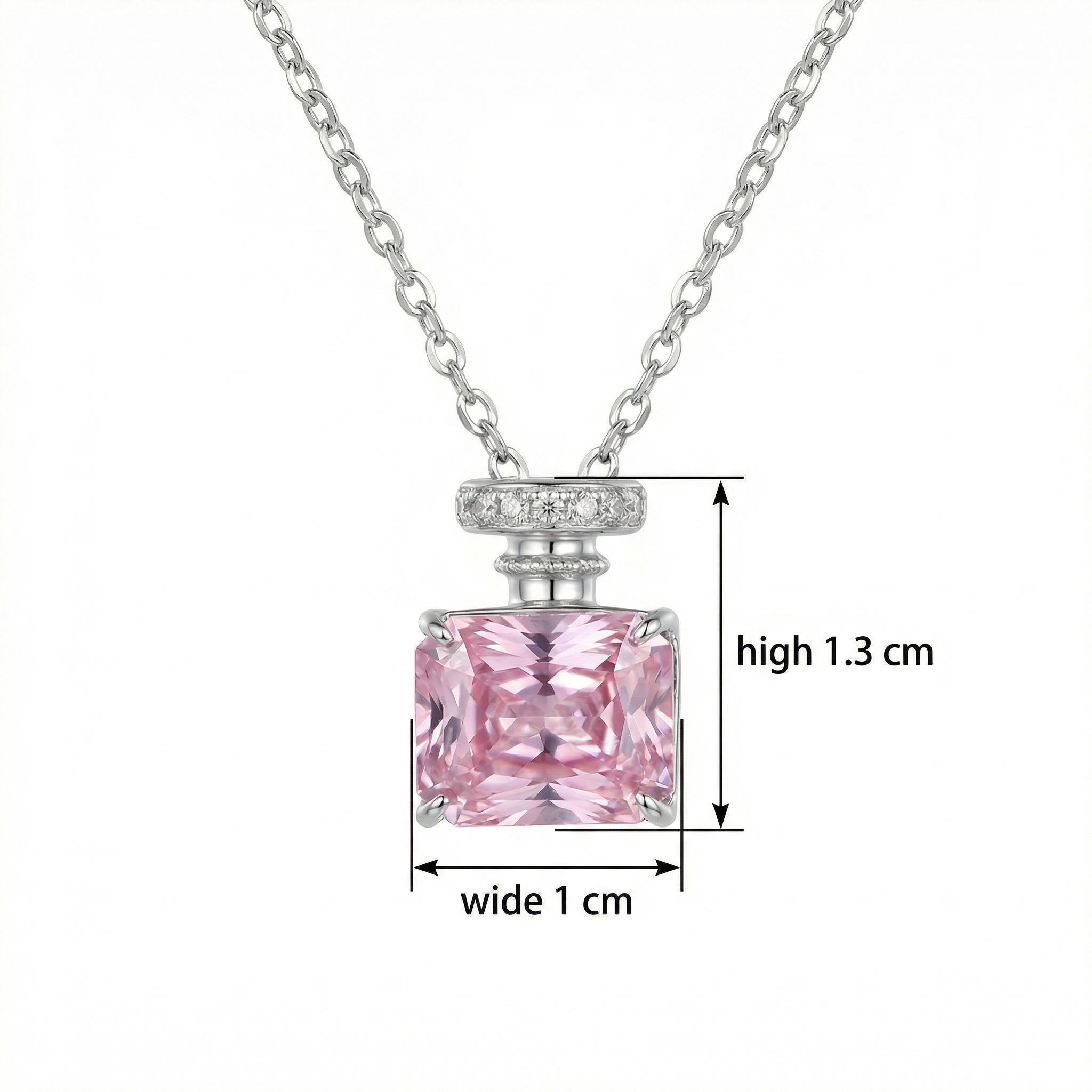 925 Sterling Silver Elegant Pink Gemstone Perfume Bottle Pendant Necklace in Sterling Silver