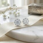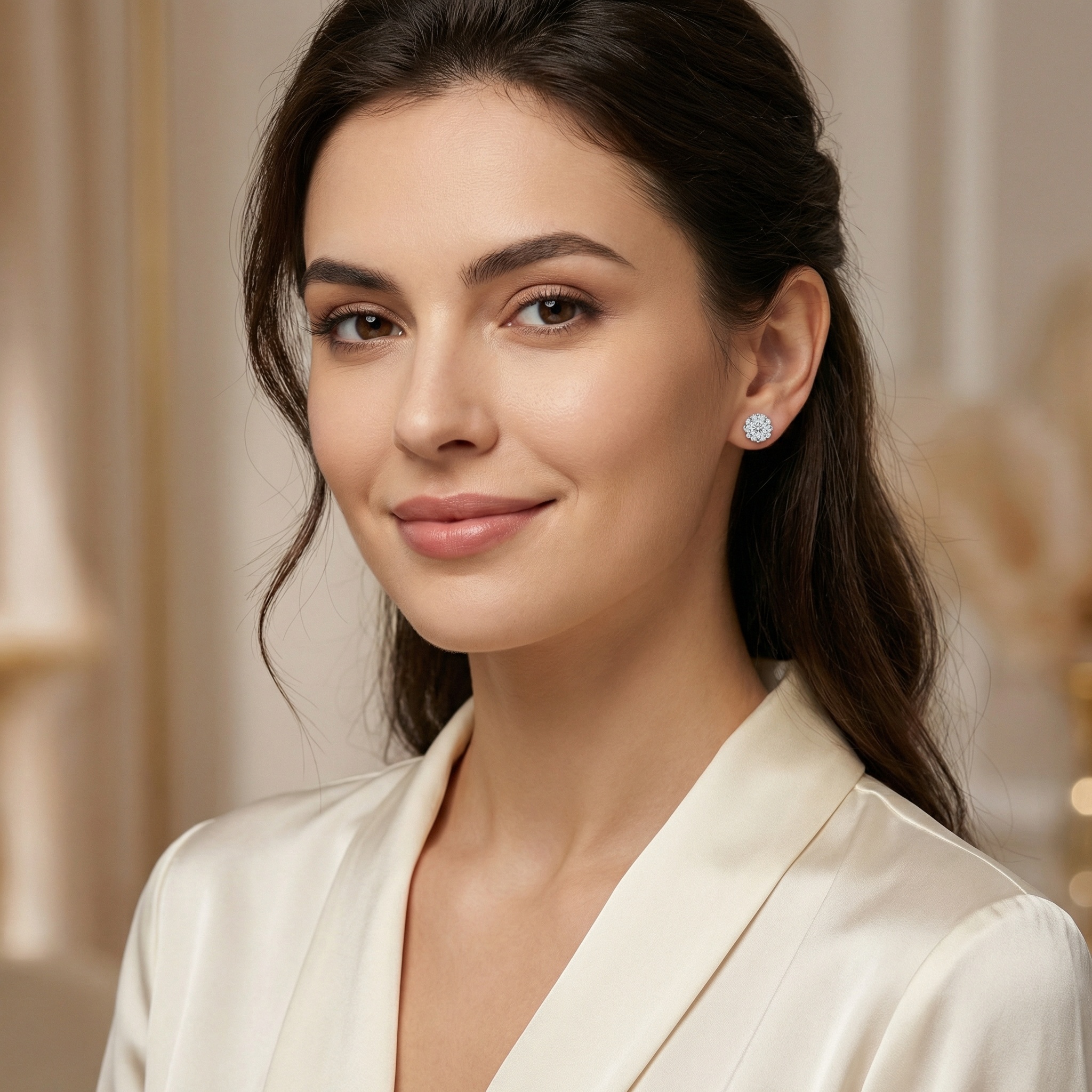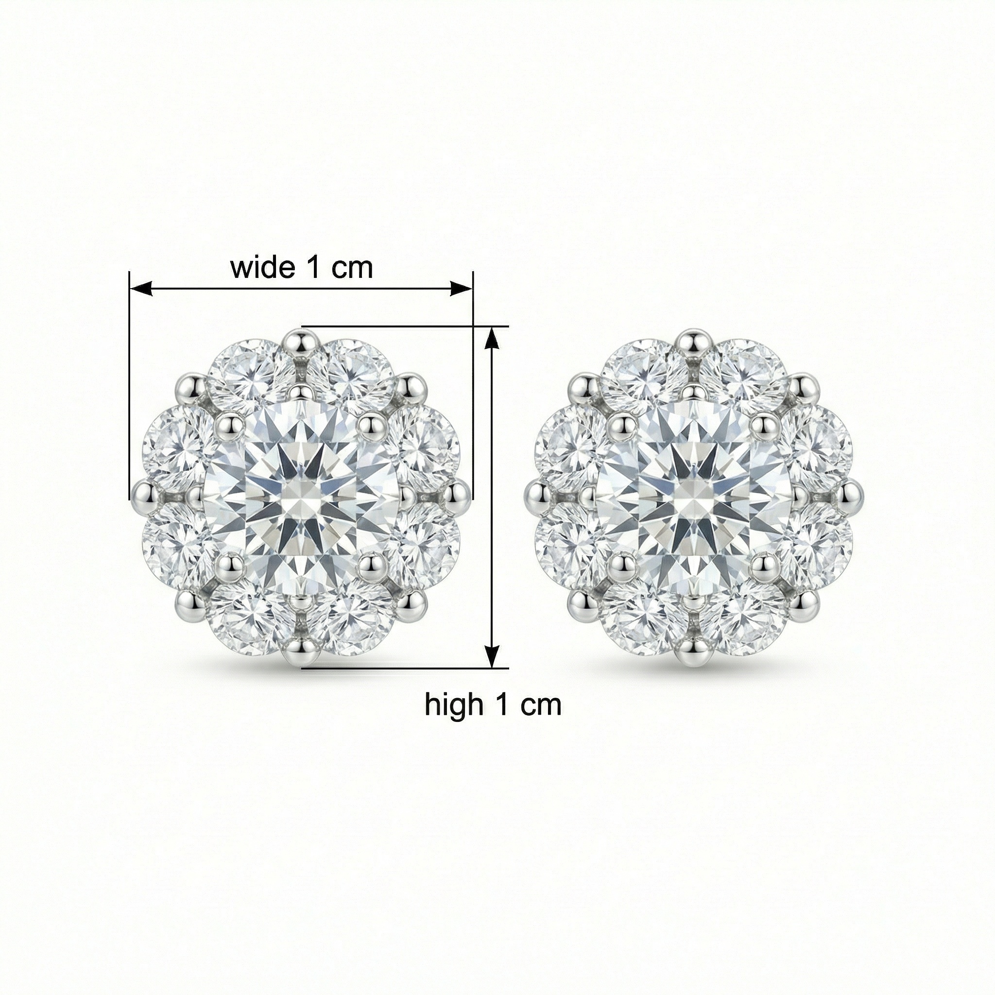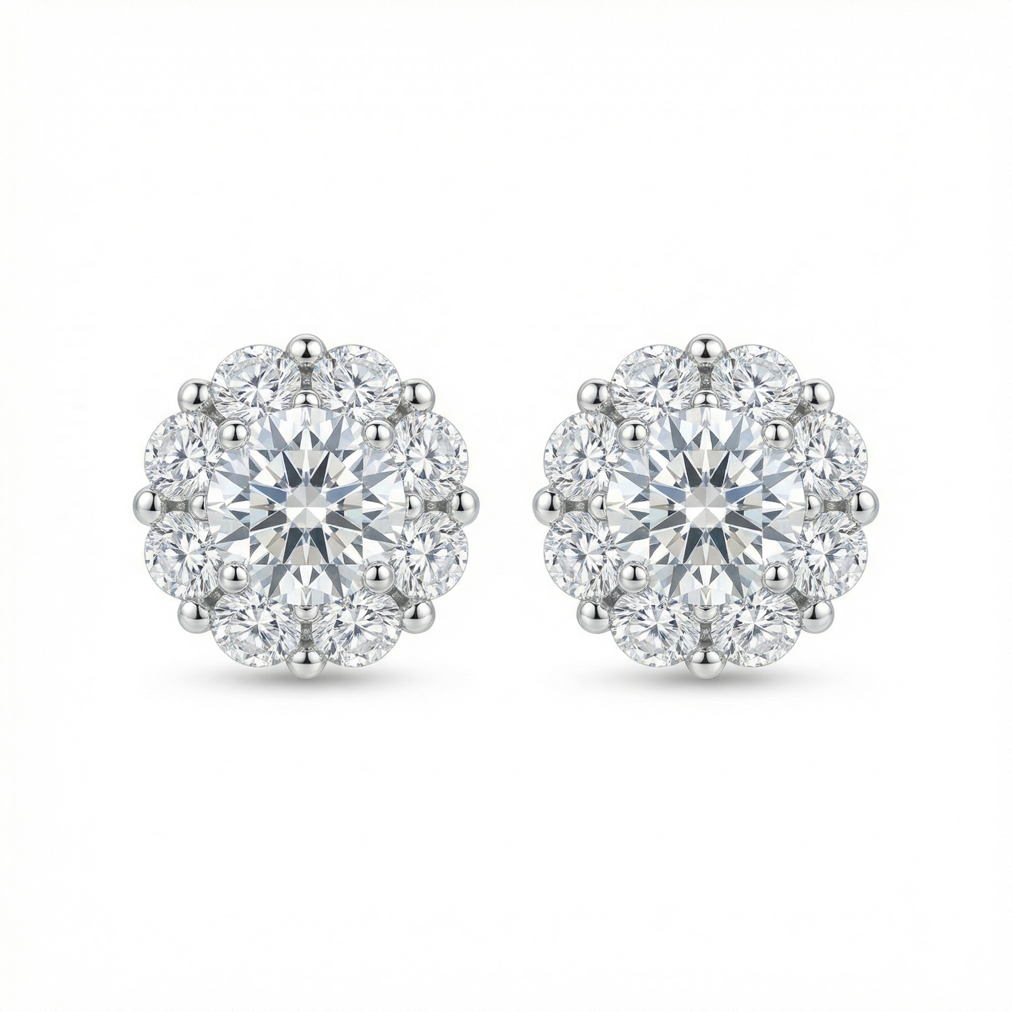 925 Sterling Silver Elegant Round Brilliant Diamond Halo Stud Earrings in Polished White Metal