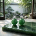 Be the first to review “925 Sterling Silver Elegant Round Green Jade and Brilliant Diamond Bezel-Set Stud Earrings”