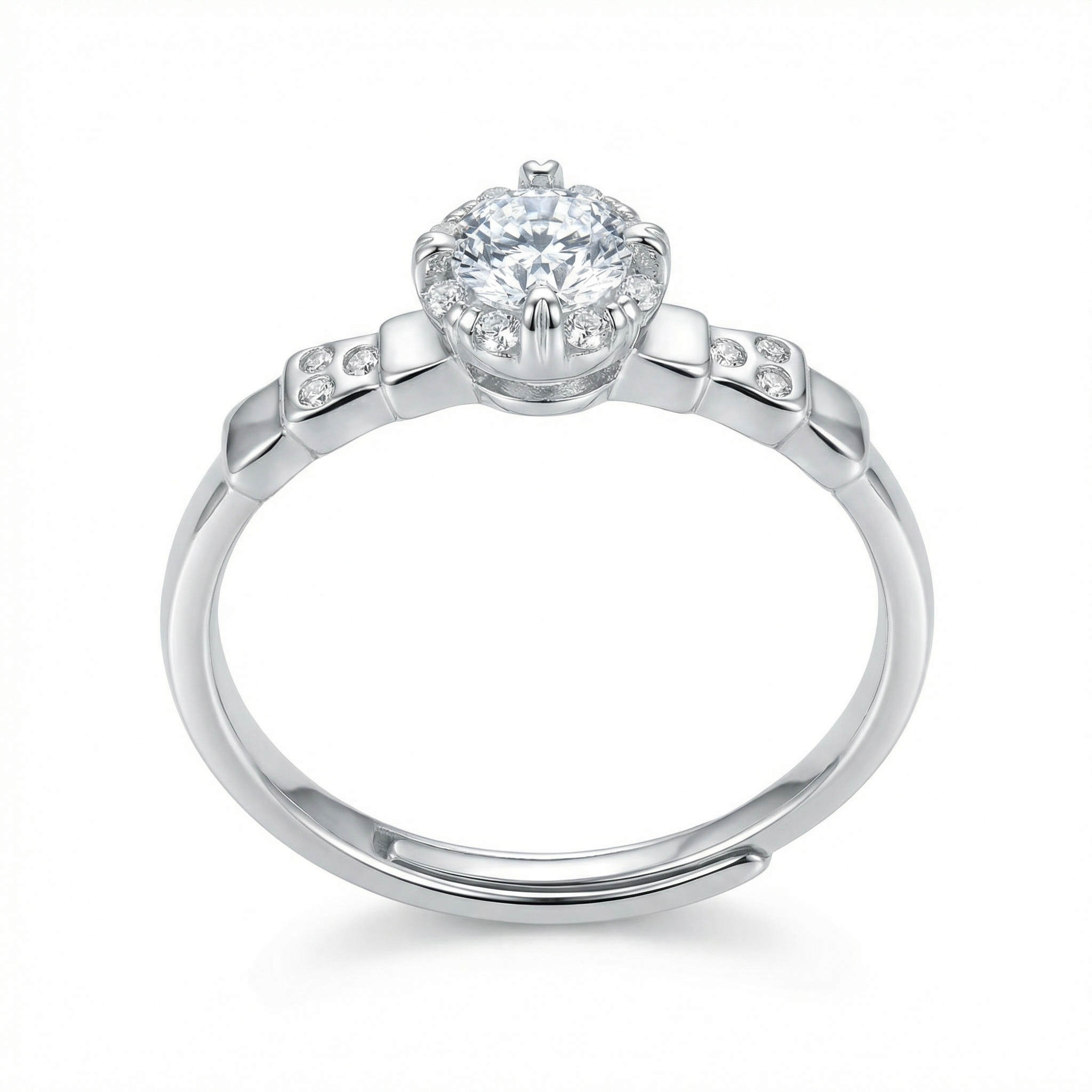 925 Sterling Silver Elegant Sparkling Adjustable Silver Halo Ring with Radiant Center Stone