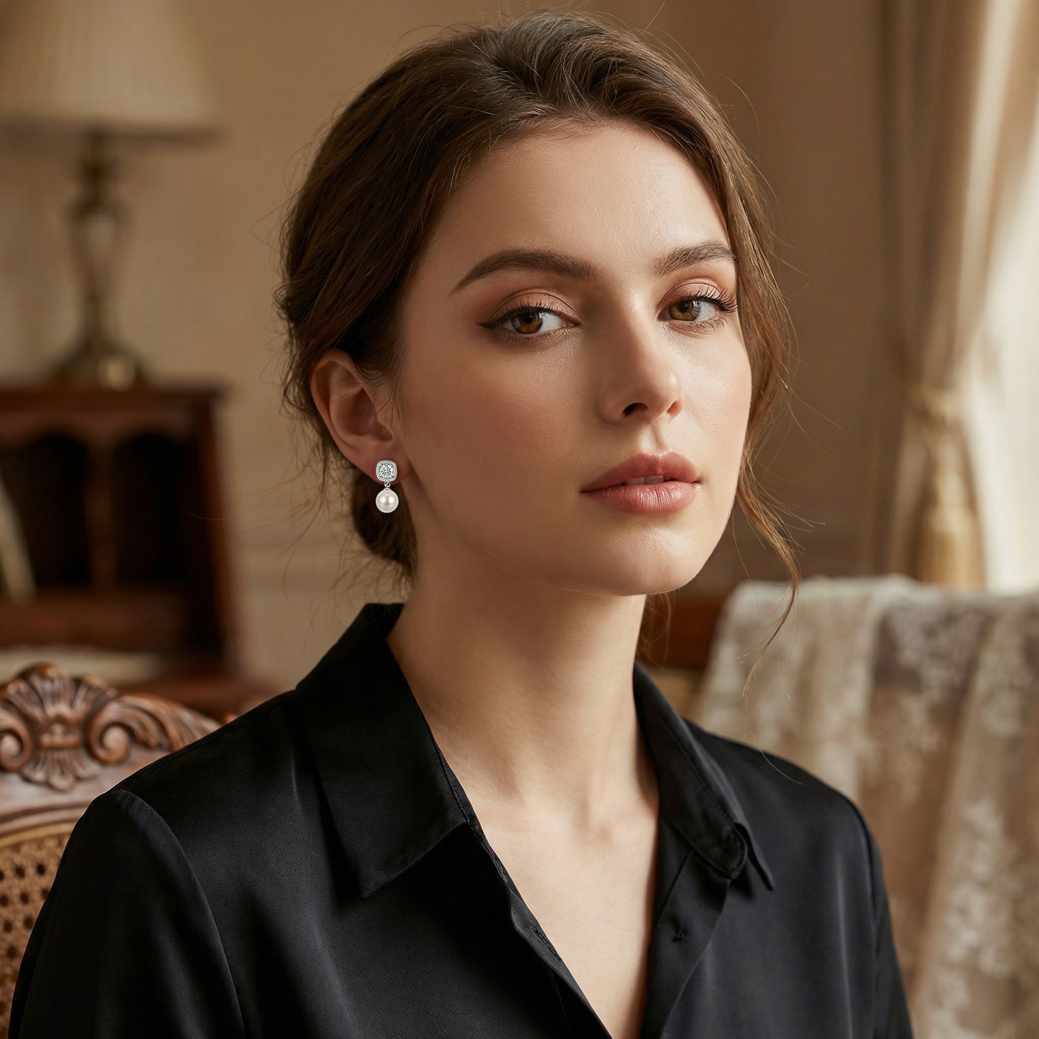 925 Sterling Silver Elegant Square Halo CZ and White Pearl Drop Earrings is designed for style, comfort, and everyday use.